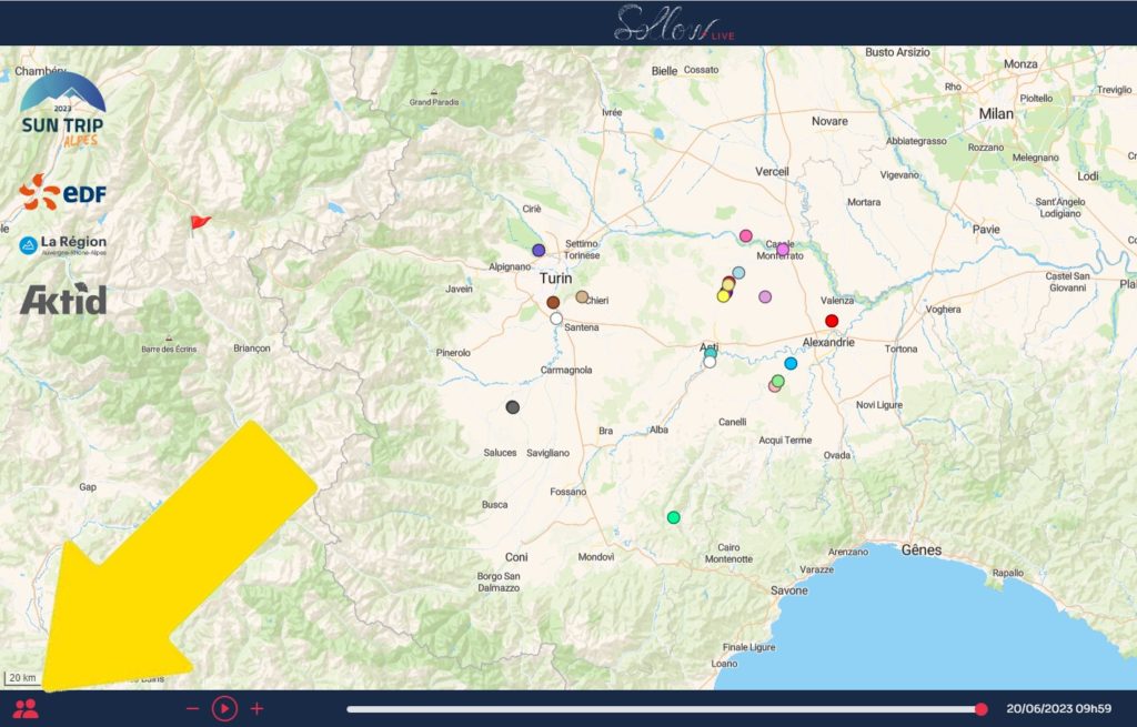 Il faut aussi savoir que les participants qui n’ont pas pu faire tout le parcours prévu, sont représentés par un point gris foncé sur la carte. Les participants qui arrêtent se figeront avec un point noir.