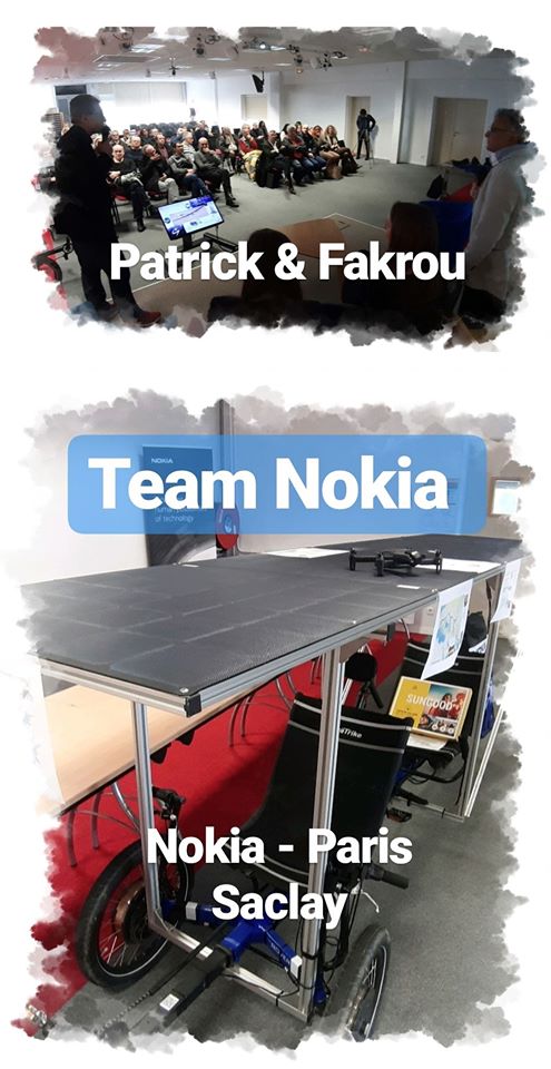 Patrick Noel et Frakou Akbaraly avait sorti le grand jeu pour leurs collègues du Campus Nokia de Paris-Saclay : le tandem solaire en état de marche et une présentation de près d’une heure pour dire leur(s) motivation.