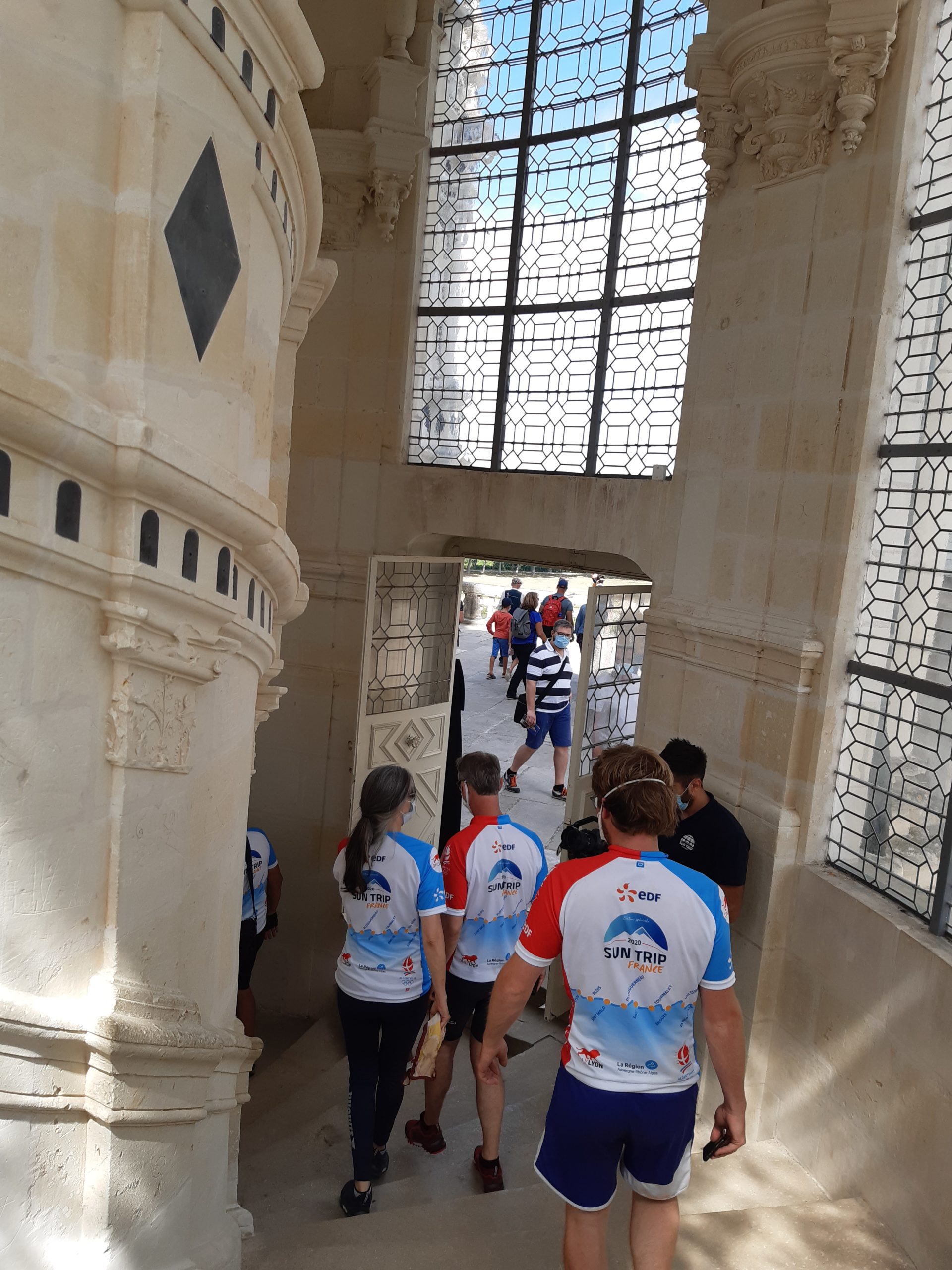 Moi qui aime dire que je suis la reine du monde quand je suis sur mon vélo, aujourd’hui le cadre de la journée à été à la hauteur de mon sentiment. J’aurai pu me croire chez moi dans la magnificence du château de Chambord où nous nous sommes rendus groupés pour une visite à ce que la France a de plus beau, ce qui est un des thèmes de ce Sun Trip.