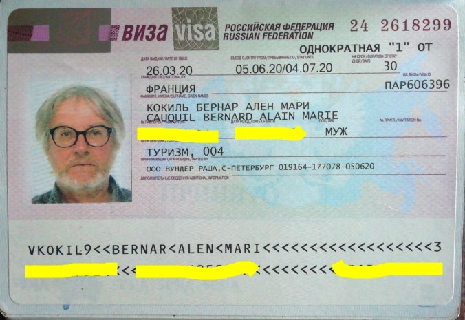 Il s’agissait de mon passeport avec le visa d’entrée sur le territoire Russe en bonne et due forme valable du 5 juin au 4 juillet 2020…. Réceptionné le 18 juin.