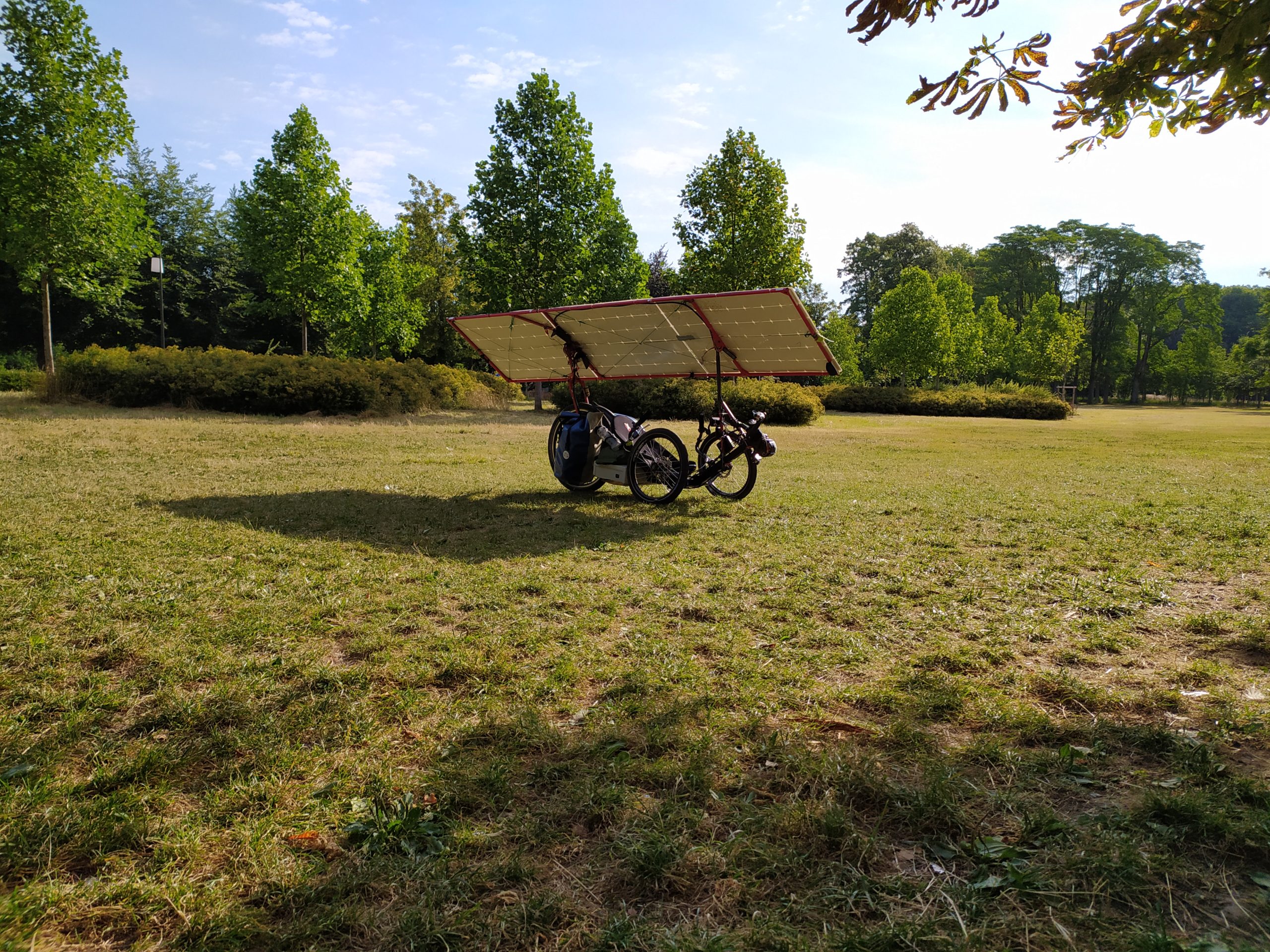 un vĂ©lo solaire posĂ© seul il attend son maitre……
