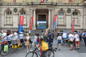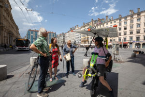 Un pré-départ en présence des élues Sonia Zdorovtzoff et Hélène Dromain, respectivement adjointe au maire de Lyon et vice-présidente de la Métropole de Lyon.