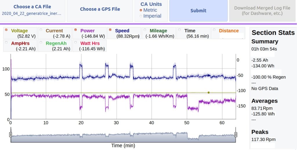 Energie produite sur 1h : 125 Wh avec une fréquence de pédalage autour de 85 rpm.