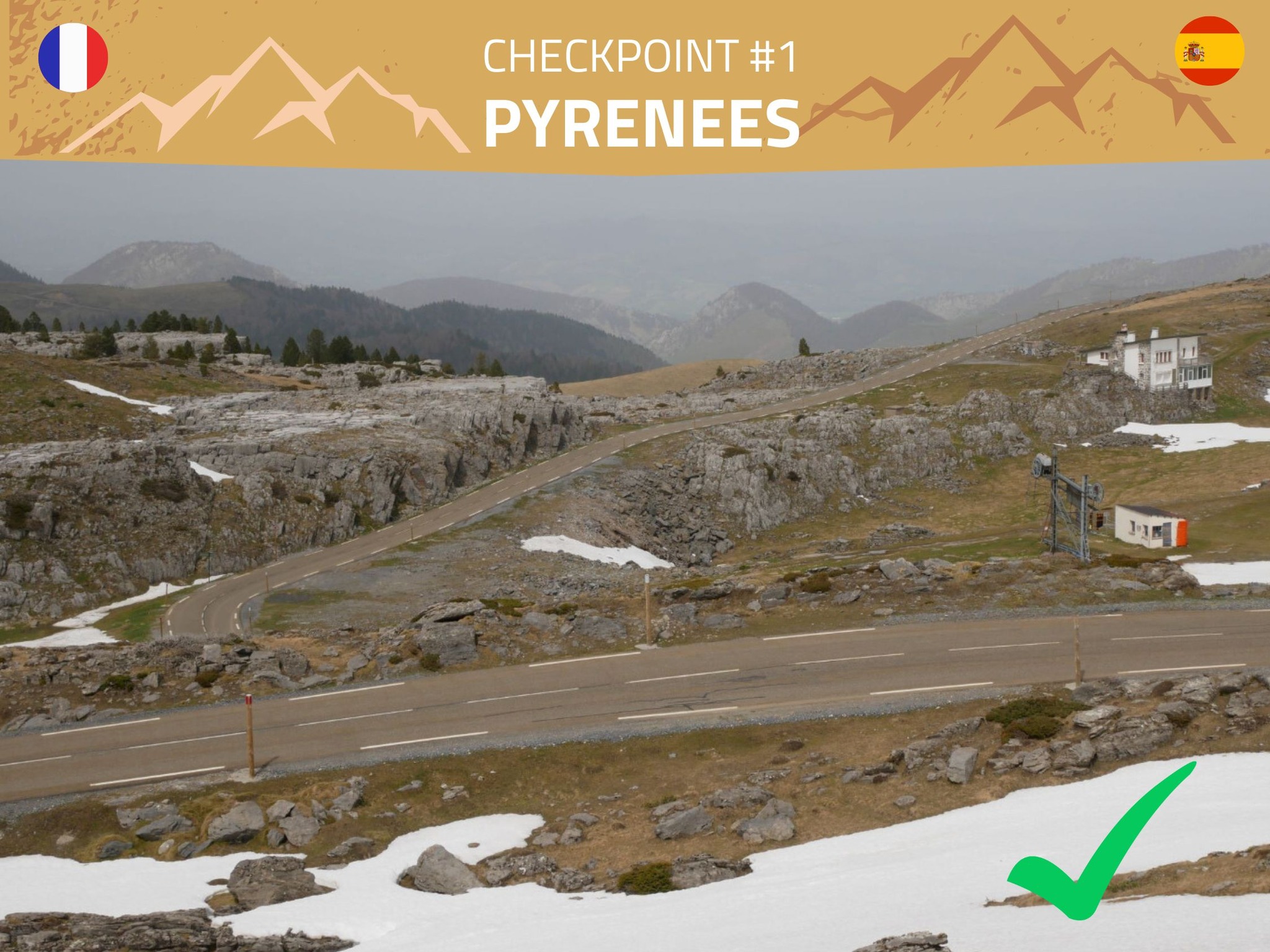 Le checkpoint #1 du Sun Trip 2024 reste validé après la visite de notre équipe et au regard des prévisions météo des prochains jours. Le col de la Pierre Saint Martin culmine à 1765 mètres d’altitude dans les Pyrénées, entre la France et l’Espagne. L’ascension, longue de plus de 25km, propose des pourcentages très raides dans sa partie centrale, avec une pointe à 16% sur une portion courte. En cas de chute de neige pendant l’aventure, un itinéraire bis sera proposé.