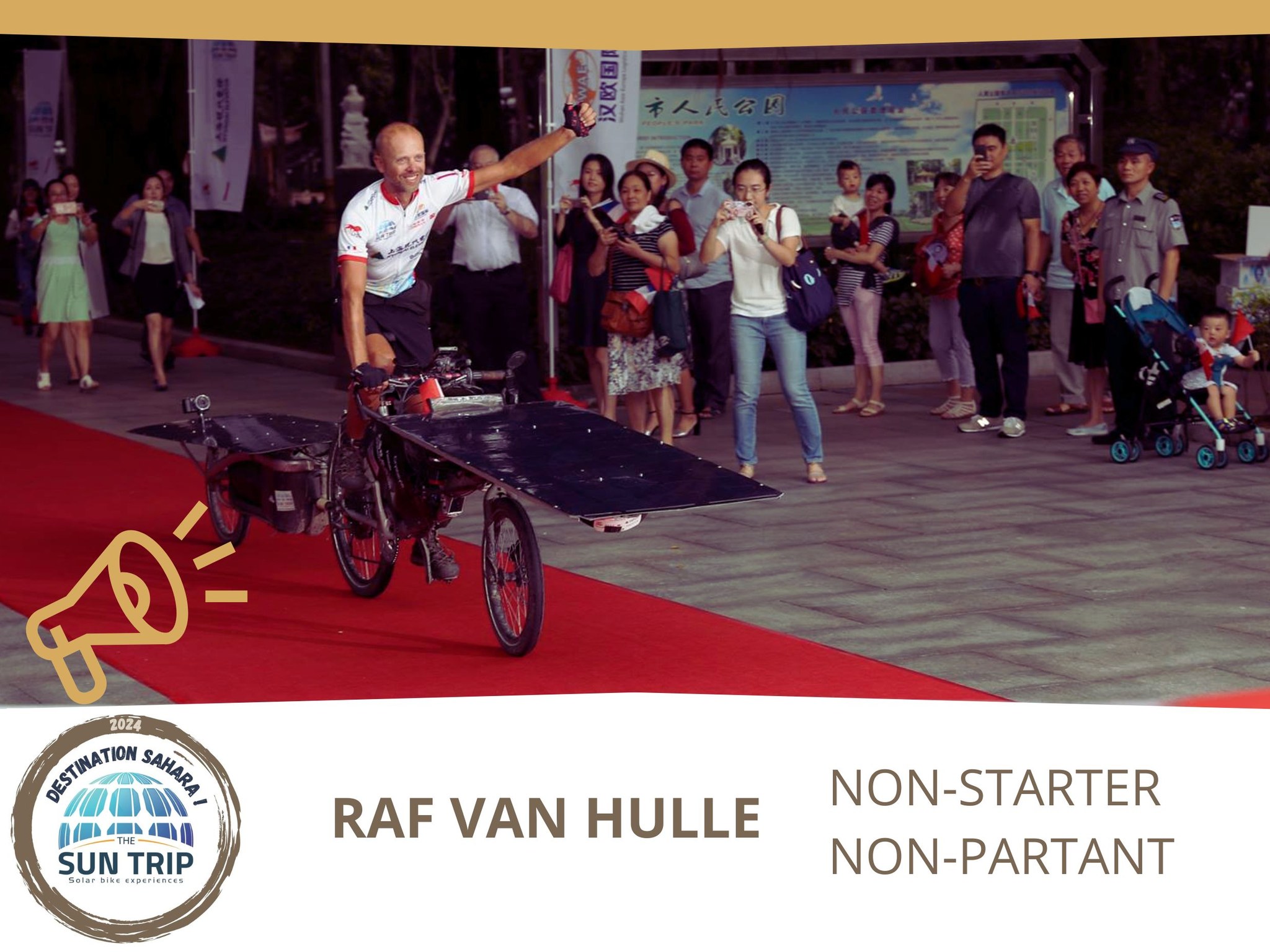 Le jury de l’aventure à décidé de mettre hors course le roumain Lucaci Arnold Vasile. Malgré de grands efforts pour rejoindre le départ (en partant depuis le Danemark, où il réside), Lucaci Arnold Vasile n’a pas pu rejoindre Lyon dans le délais demandé, les participants devant être présents 2 jours avant le départ. Fait inédit dans l’histoire du Sun Trip, Lucaci Arnold Vasile est même arrivé 4 heures après le départ officiel de l’aventure. Considérant qu’il lui serait trop difficile de tenir le rythme de cette grande édition, le jury de l’aventure a donc décidé d’une mise hors course. Sa balise restera donc bloquée à Lyon. Mais pour l’encourager dans ces efforts il lui a été proposé de poursuivre son chemin sur la route du Sun Trip, en portant le maillot officiel, avec l’idée de continuer à valoriser son voyage dans la communication de l’événement. Bonne route à ce valeureux aventurier.