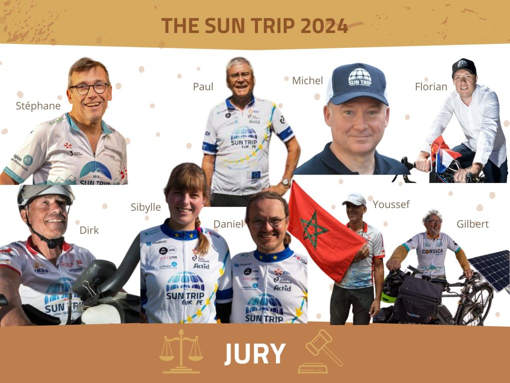 Voilà les 9 personnes qui composeront le jury de l’aventure The Sun Trip 2024. Ils viennent de 4 pays différents et ont tous été participants et/ou bénévoles dans l’organisation lors des 10 dernières années. Ils auront une voix chacun quand il s’agira de statuer sur une situation litigieuse, en application de l’avis d’aventure et règlement technique. Une décision devra être prise avec un total de 5 voix concordantes.