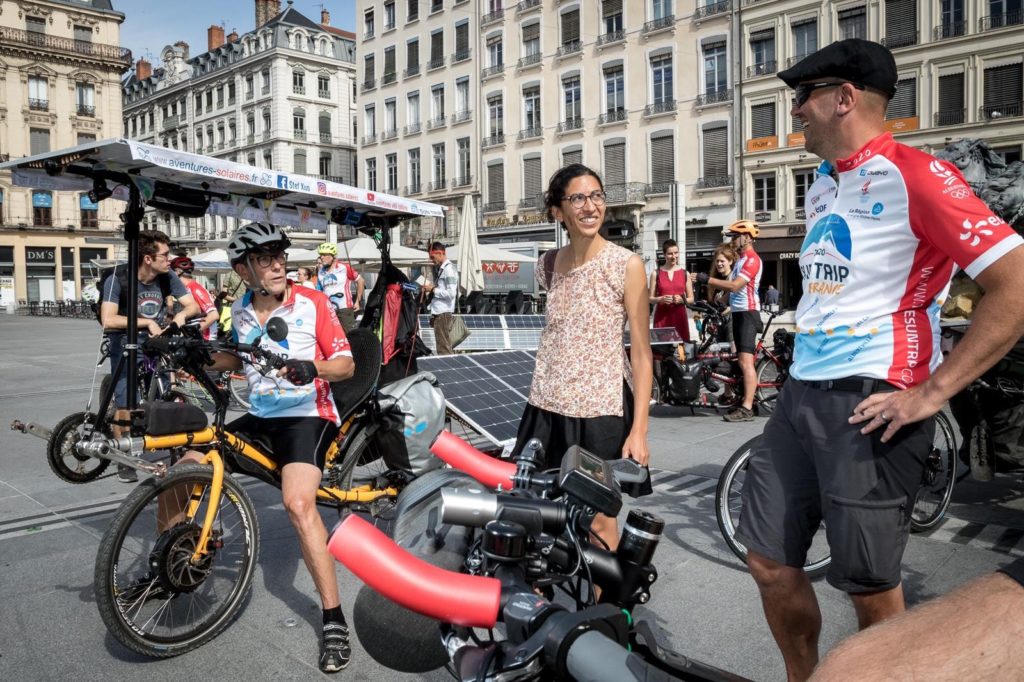Au départ du CISL éthic étapes, les participants faisaient un passage symbolique par la place des Terreaux, lieu de départ du Sun Trip Lyon-Canton 2018. Les réglementations actuelles ne permettaient pas l’organisation d’un événement. Le groupe était toutefois accueilli de manière spontanée par les élus de la ville et de la Métropole de Lyon.