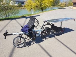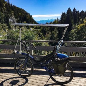 - Nazca Pionner pour le suisse Eliott Guenat. Directement inspiré des engins de Mickaël et Stéphane. Moteur Grin hub, batterie Li-Mn 48V 21Ah,toit solaire de 150Wc installé par Declic-eco et remorque Touzet de 220W à venir.