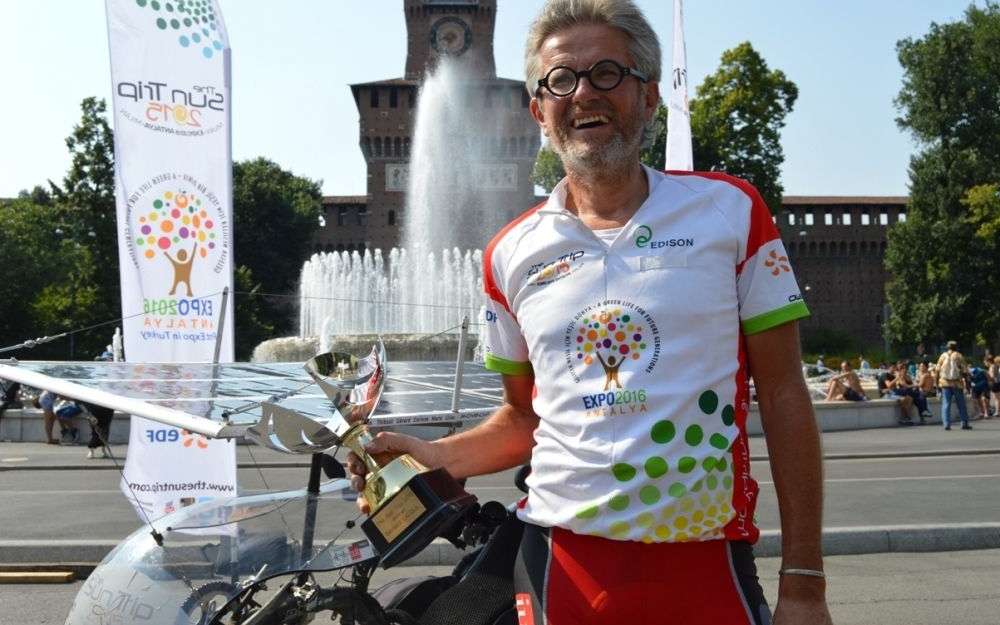 Les progrès techniques réalisés en deux ans sont incroyables comme en témoignent les performances spectaculaires de Bernard Cauquil, cavalier le plus rapide. arrivant à Milan en 25 jours seulement, devançant par deux jours Raf Van Hulle, ancien champion revenu défendre son titre. L’originalité de sa machine : un vélo couché à deux roues sous un long toit solaire et un moteur roue installé en position pédalier (mid-drive).