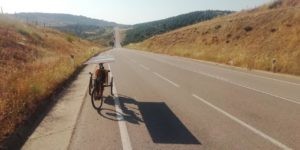 – 318km, la distance moyenne journalière effective par rapport aux nombre de jours de roulage (35 jours). Exactement comme les 2 premiers, je n’ai pas roulé pendant 2 journées : un peu plus d’un jour imposé par l’organisation + 1/2 journée à Font-Romeu avec mon fils + 1/2 journée pour randonner au Pico Veleta.