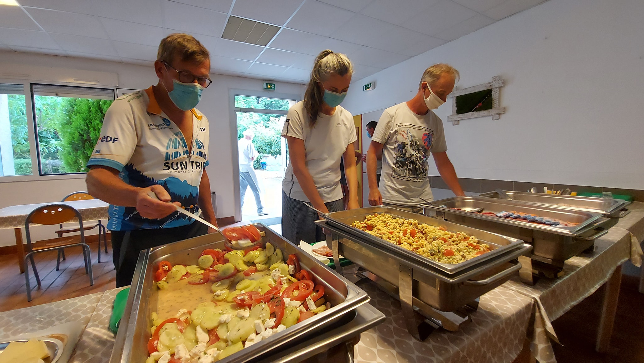 Ils se sont quittés il y a 4 jours sur le sommet du Tourmalet. Ils ont presque tous pris des routes différentes. Ils se retrouvaient hier soir à Anduze dans le Gard, au centre Val de l’Hort éthic étapes. Extrait de l’ambiance.