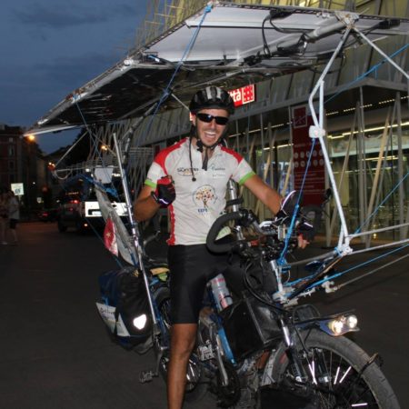 Sur son étonnant tandem solaire qu’il a construit, Antonio a parcouru les routes du Sun trip 2015 en multipliant les contacts, les rencontres et en tissant des amitiés tout au long de son parcours.