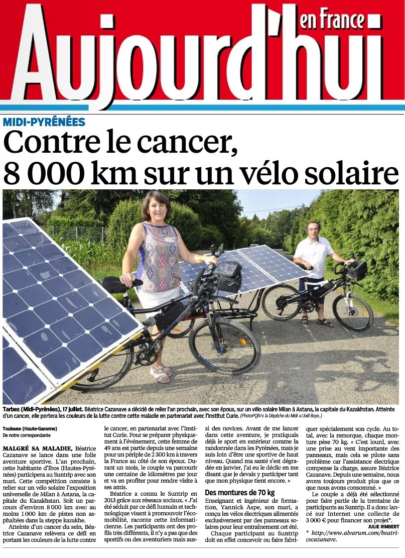 Fan du Sun Trip depuis 2013, Béatrice a été le moteur de la participation du couple à l’édition 2015. Celle-là n’a été possible que grâce aux compétences techniques de Yannick, concepteur des vélos. de profession ingénieur, prof de math, et météorologue.
