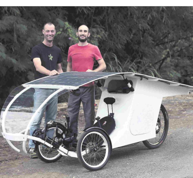 Il viendra avec un vélo solaire, 100% « home made », celui de la photo ou un autre encore plus chouette.