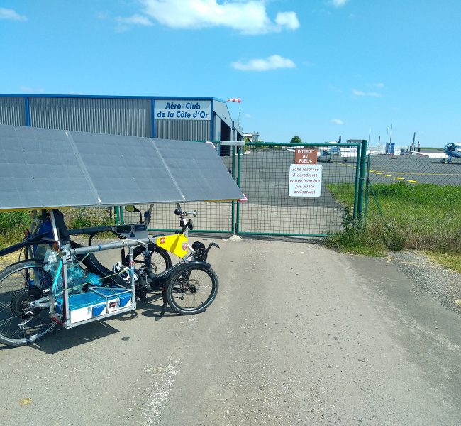 Utilisant des panneaux photovoltaïques depuis plus de 30 ans, pour la caravane mais aussi sur mon sac à dos pour la randonnée pédestre en autonomie électrique, l’envie mais venu d’adapter cela sur mon vélo droit à assistance électrique. Et c’est en 2021 que j’achète un panneau et une remorque pour mon vélo droit avec lequel j’ai parcouru environ 2000 km.