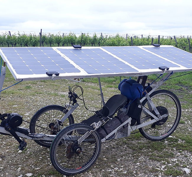 Ancien cadre de l’industrie automobile, je suis passionné par le voyage 100% solaire avec un vélo bricolé dans mon garage à moindre frais. Destination les portes du Sahara sera mon 4eme grand Suntrip.