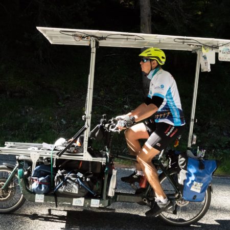 Lors du Sun Trip 2018 Peter est arrivé en 11ème position, en 82 jours, en restant en mode de recharge 100% solaire.