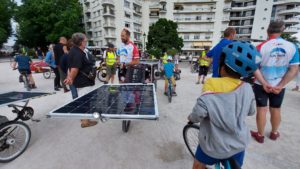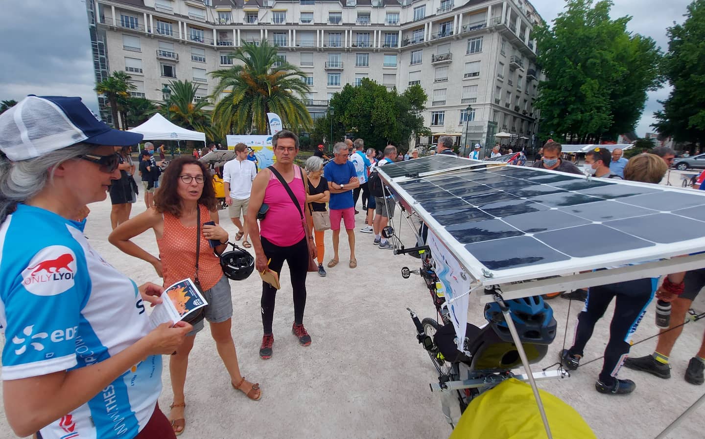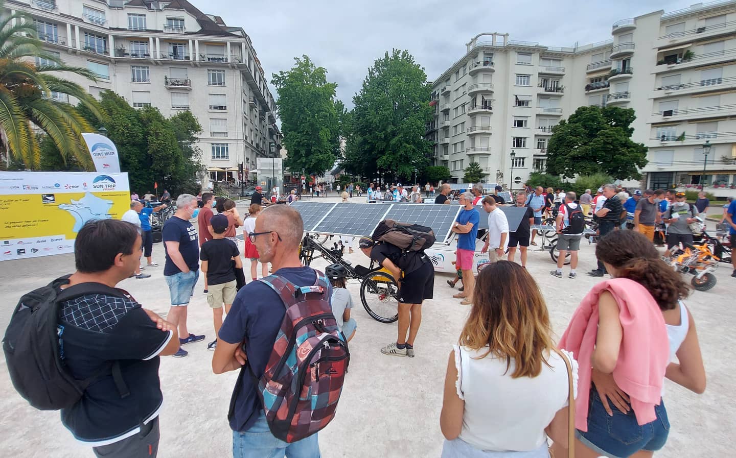 L’accueil à Pau était organisé au Square George V, avec le soutien de la ville, de Pau Tourisme, et avec le concours de l’association Pau à Vélo pour un tour de la ville en mode « velorution ».