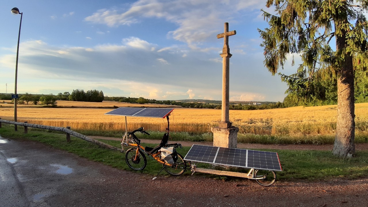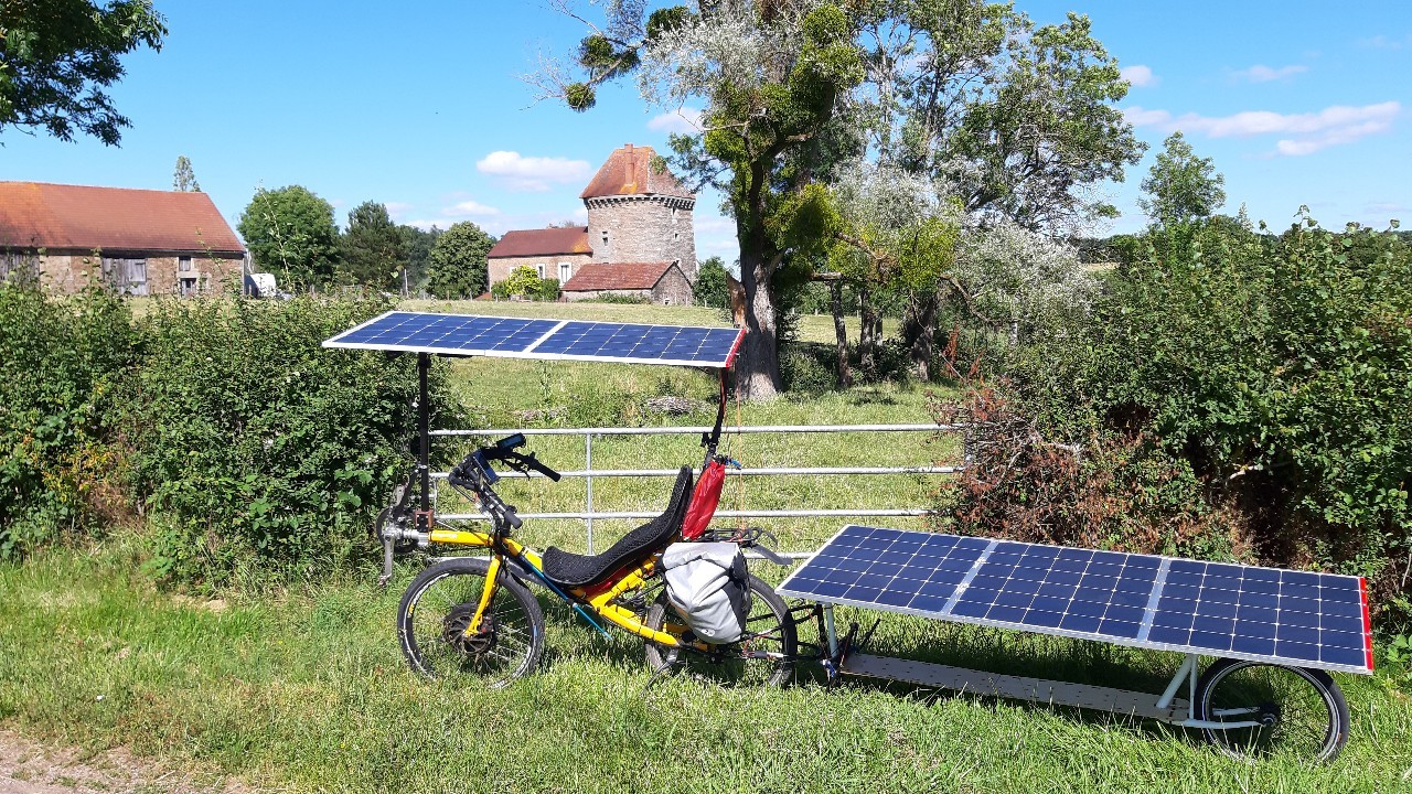 L’enjeu n° 1 : apprivoiser le vélo couché, pour moi c’est tout nouveau ! J’ai besoin de connaître son comportement sur la route, avec la toiture solaire, avec la remorque, dans les virages, les nids de poule, dans les rafales de vent…
