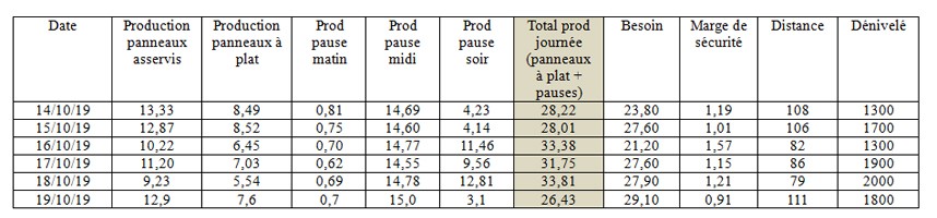 - Dans l’ensemble on voit que les marges de manœuvre sont très serrées, et étant donnée la climatologie du mois d’octobre en Corse, il est peu probable que l’on réalise la totalité du parcours entièrement au solaire. Mais ce n’est pas exclus.