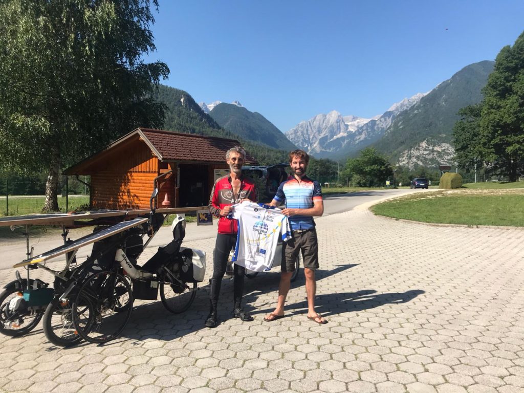Après échanges sur le climat et sur la mobilité solaire, Christian et Laurence lui ont remis un maillot du Sun Trip qui avait déjà parcouru 6000 kms d’aventure.