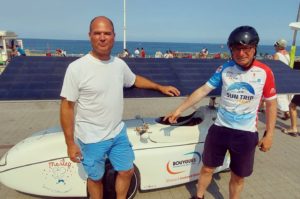 Rencontre avec la fusée Jean-Marc Dubouloz sur le bord de plage ce matin. Passera t-il avec autant d’aisance les montagnes des Pyrénées ? Réponse dans 2 jours.