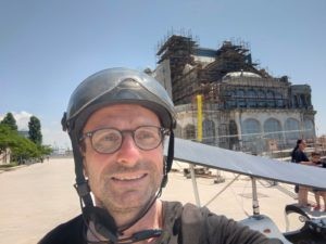 La vitesse moyenne est annoncée à 30.2 km/h sur le global, c’est pas tellement plus vite que 2018, mais les heures de roulage sont elles bien plus élevées : 11h40 de pédalage/jour pour Jean-Marc Dubouloz. Des chiffres qui sont aussi le signe d’un parcours 2021 beaucoup plus tortueux que sur les éditions 2013, 2015 et 2018. En Europe peu de longue ligne droite comme dans les steppes d’Asie et pas d’autoroute comme en Chine. On peut penser que les vélomobiles, lancés sur le même parcours que 2018 (assez plat au final), auraient réalisé une vitesse moyenne bien supérieure.