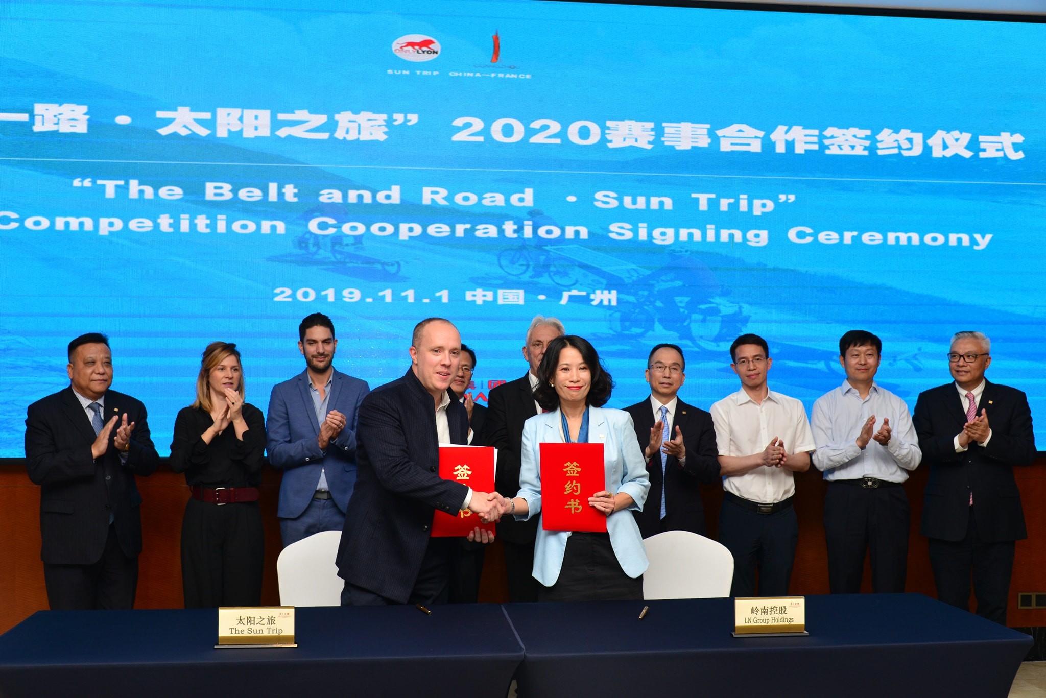 Autour du Vice-président de la métropole de Lyon, Alain Galliano, et de la Directrice du Nouvel Institut Franco chinois, Candice du Chayla, était notamment signé l’accord de co-organisation de la partie Chinoise du Sun Trip 2020, avec le groupe Lingnan. Cette puissante entreprise d’Etat accompagne le projet depuis 2018, avec intelligence et bienveillance.