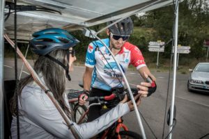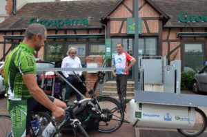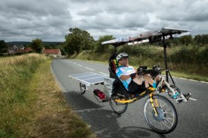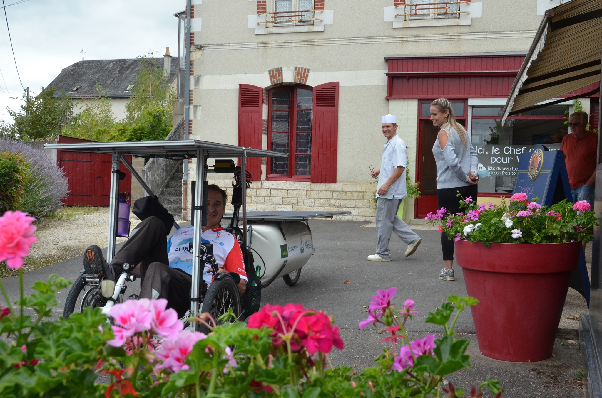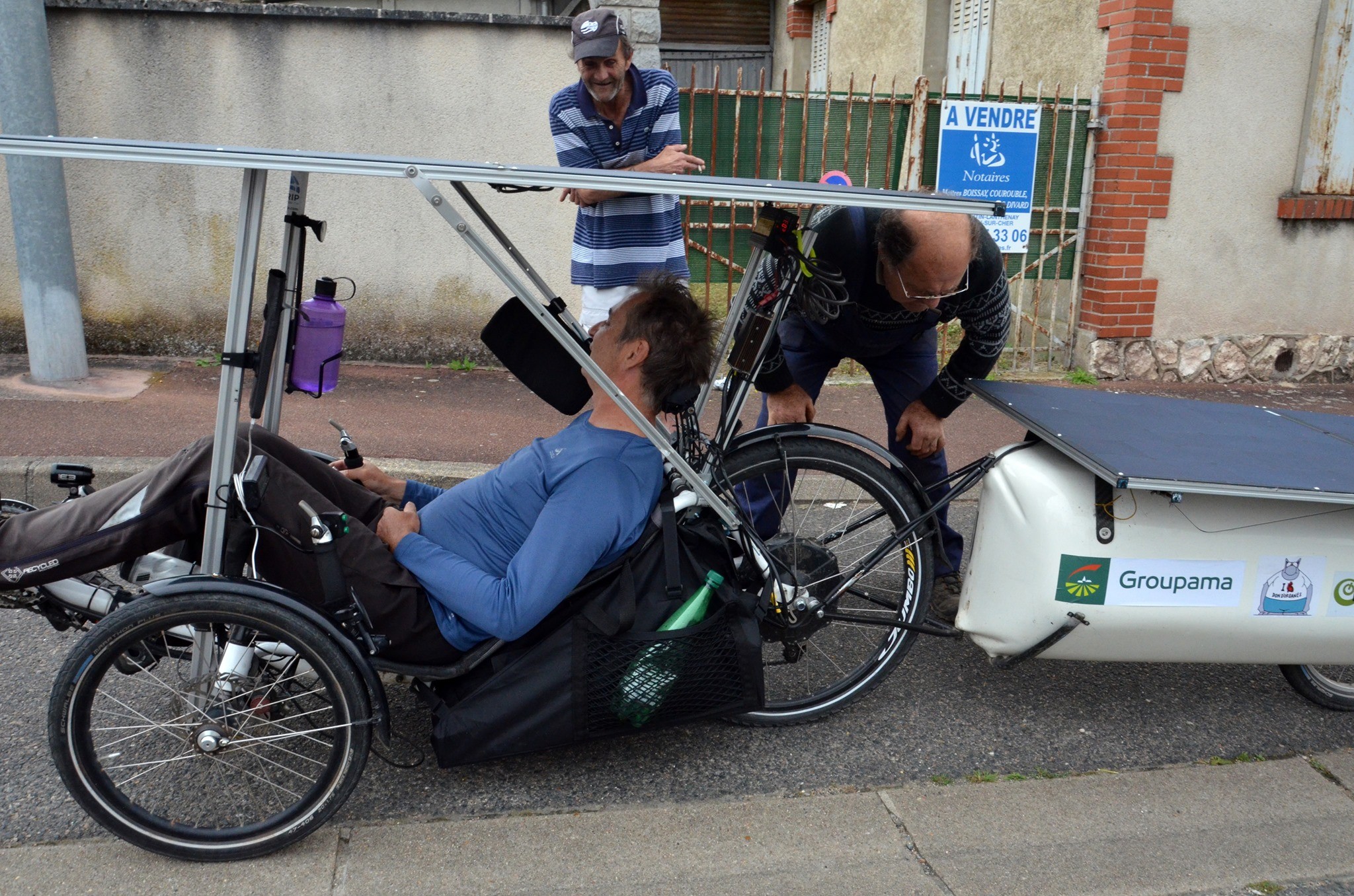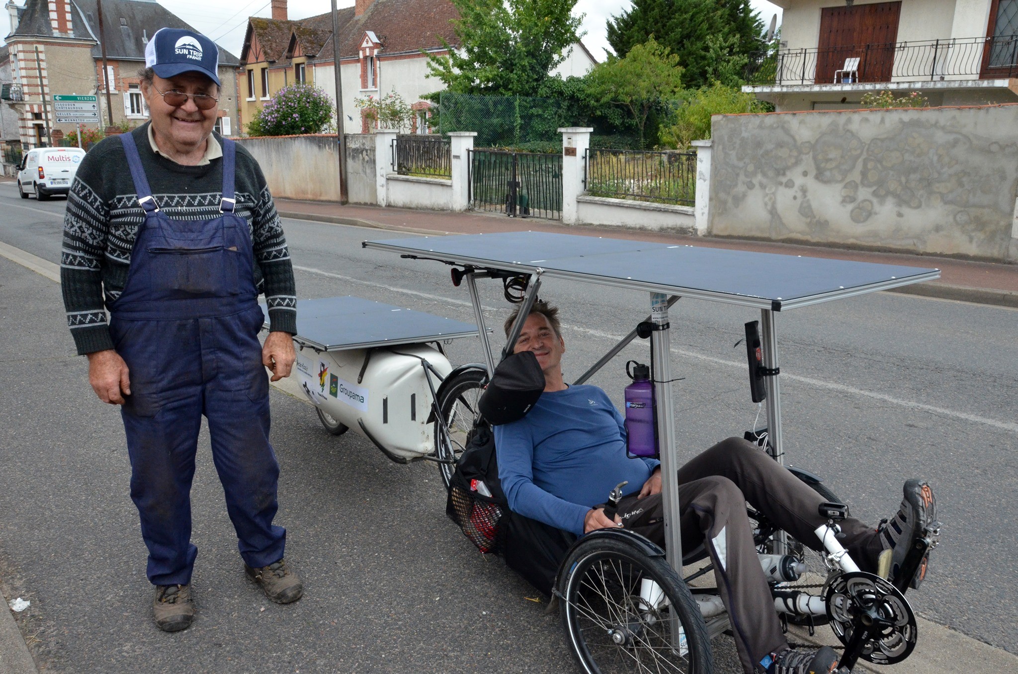Les rencontres sont aussi permanentes, à l’image de la vidéo ci-dessus et de ces quelques clichés pris dans la roue de Paul Baudry, qui roule pour les couleurs de Groupama sur cette aventure. Partout la même curiosité pour le vélo solaire, partout la gentillesse des français.