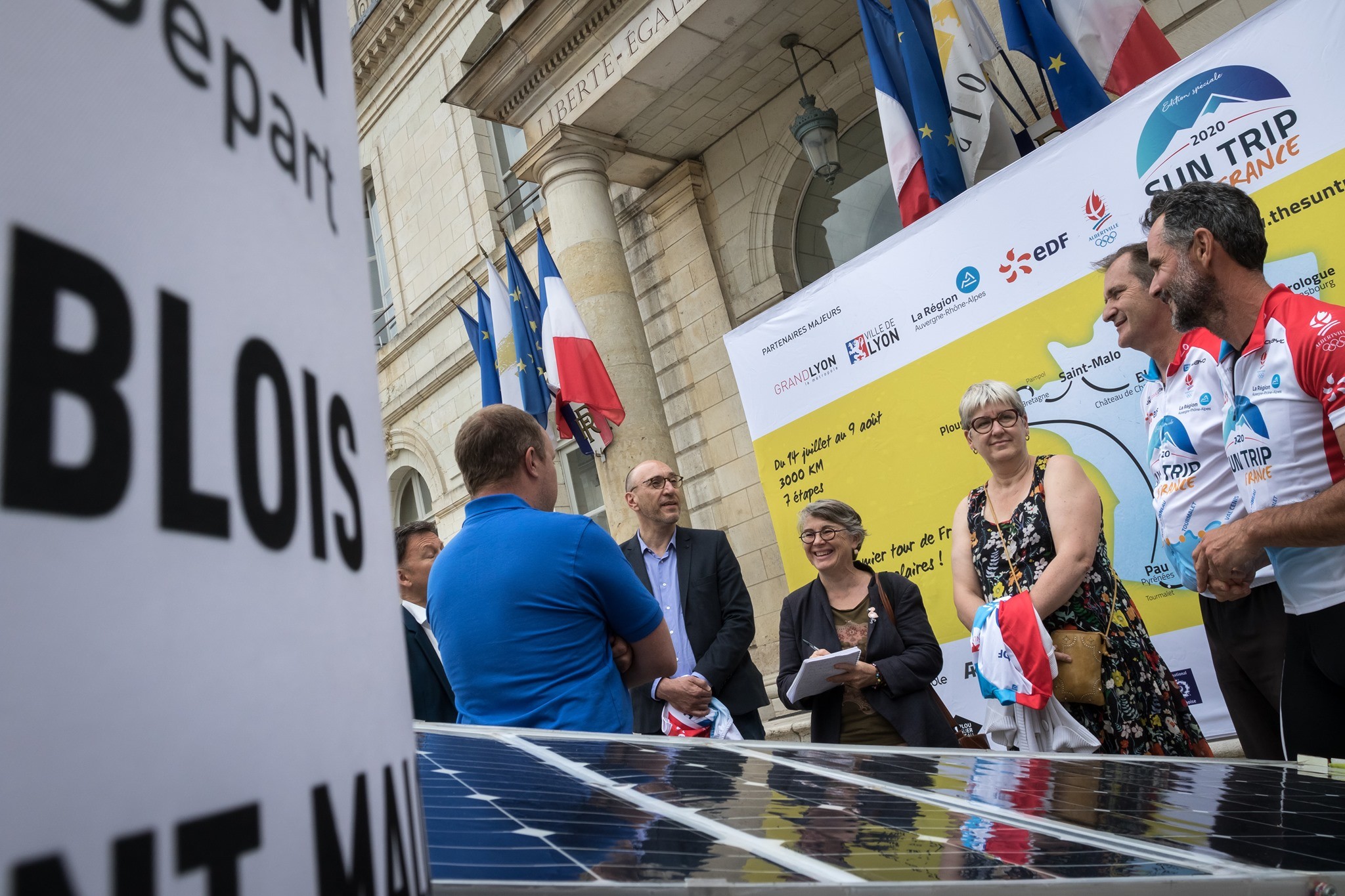 Au terme de 2 jours sans soleil, c’est le Belge Géry Gevers qui arrivait le premier à Blois, pour prendre la pose devant le superbe château de la ville. Puis un petit groupe était accueilli en mairie de Blois par par Joël Patin, adjoint au sport, Christophe Degruelle, Président de la communauté d’agglomération de Blois, Marie-Noëlle Chalumeau, directrice de Éthic Étapes Val de Loire – Blois.