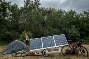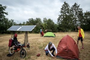 La recharge 100% solaire n’aura donc pas été possible pour tous, les pépins techniques ont été nombreux, mais la bonne ambiance reste de mise et l’entraide est omniprésente. Les participants vont chercher l’aventure, au bout de la rue, au bout du champ. A ce moment, parmi les partants, seul le Belge Patrick Abrams a du abandonner, sur raison technique.