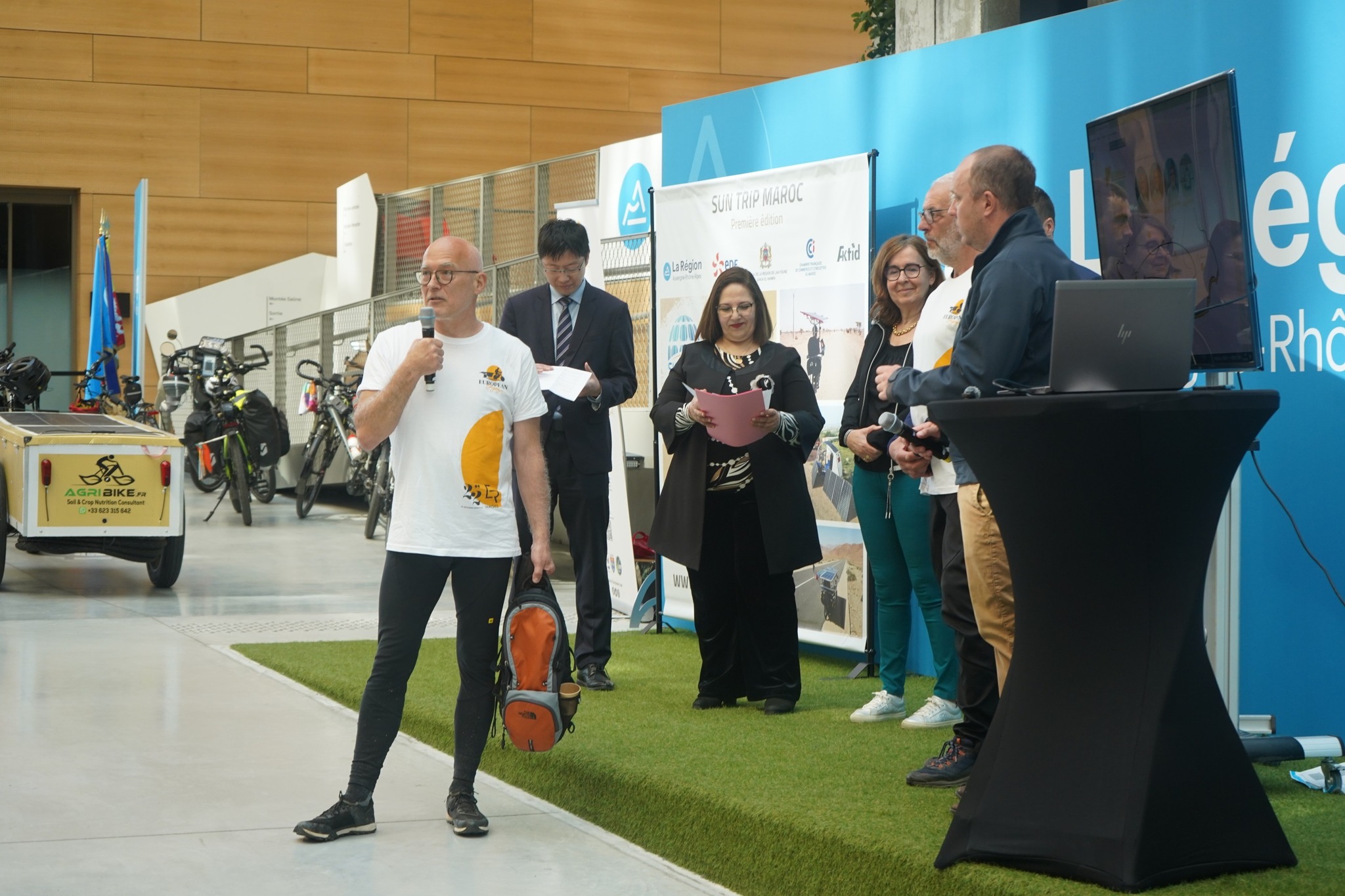 Merci à nos partenaires pour leur présence au départ : Sophie Blachère, Conseillère régionale, Simon Declerck responsable innovation à la délégation régionale d’EDF, Fatima Baroudi, Consule générale du Maroc à Lyon, Hongwei Zhang, Consul de Chine à Lyon.