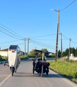 Parmi les participants qui ne jouent pas la course de façon assumé, on compte Vincent Lauga, ci-dessus en photo à Salamanque en Espagne. Il participe pour la toute première fois au Sun Trip et supporte la cause de la Ligue de Protection des Oiseaux. Aussi aime t-il comparer les suntrippers aux oiseaux migrateurs et aujourd’hui il postait un article sur sa page Facebook : « avec le printemps, reviennent les oiseaux migrateurs ! Parmi tous les migrateurs équipés de GPS en 2023 pour le programme MIGRATLANE, le premier arrivé est : « Clément » le coucou gris qui porte une balise légère (5 grammes). La traversée printanière du Sahara s’est faite en un seul vol, partant le 28 mars matin du Mali, avec des hauteurs de vol atteignant 6500 mètres au-dessus du désert ! » Voilà de quoi inspirer plus d’un de nos aventuriers en vue du retour du Sun Trip 2024 !