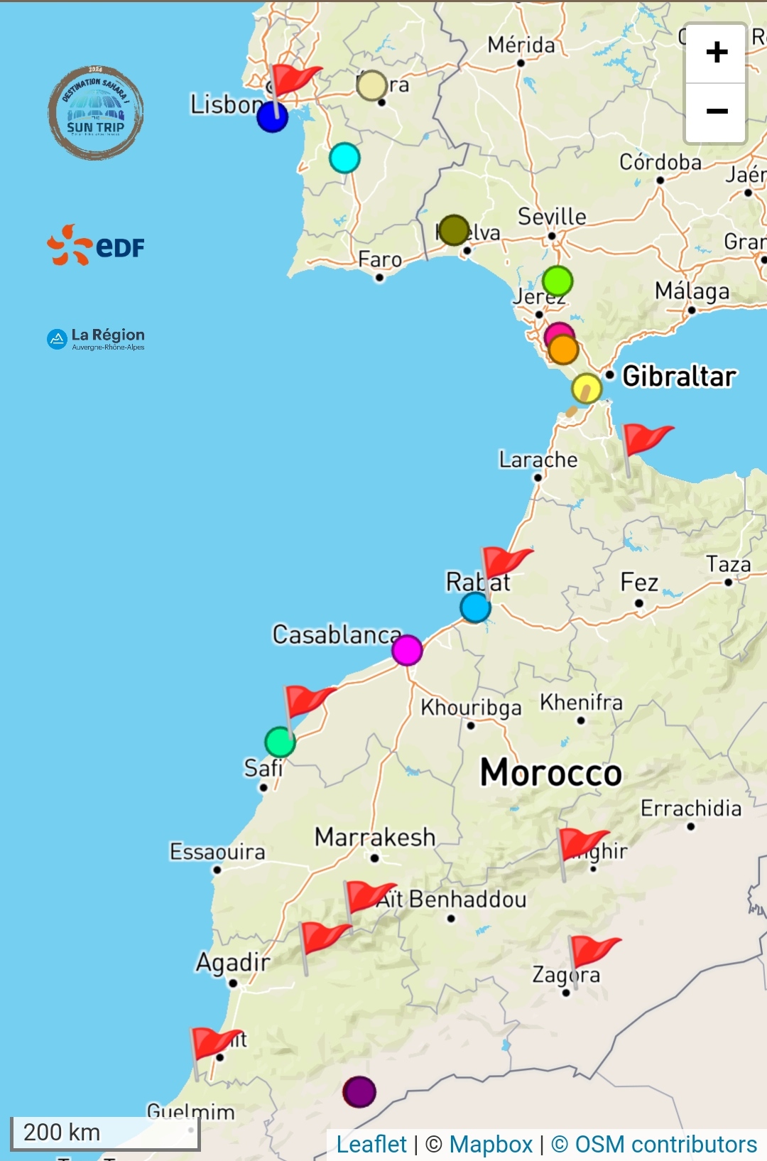 7 participants étaient arrivés au Maroc au soir de cette 14eme de route. Plus au Nord Miguel Letor entrait au Portugal et Jean-Louis Mérelle passait le checkpoint 2.