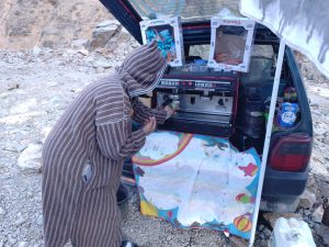 Vincent : « L’ascension du col s’est faite tranquillement, Le plus pénible étant les 25km de route détruite, en attente de réfection suite au tremblement de terre: il fallait slalomer entre les trous, dans les cailloux (en évitant les véhicules qui ne se poussent pas pour laisser passer un vélo)… et en se demandant ce qui pouvait casser. Bilan: juste un rivet a lâché, que j’ai réparé de suite… mais j’ai un peu de bricolage en perspective avant de contin »