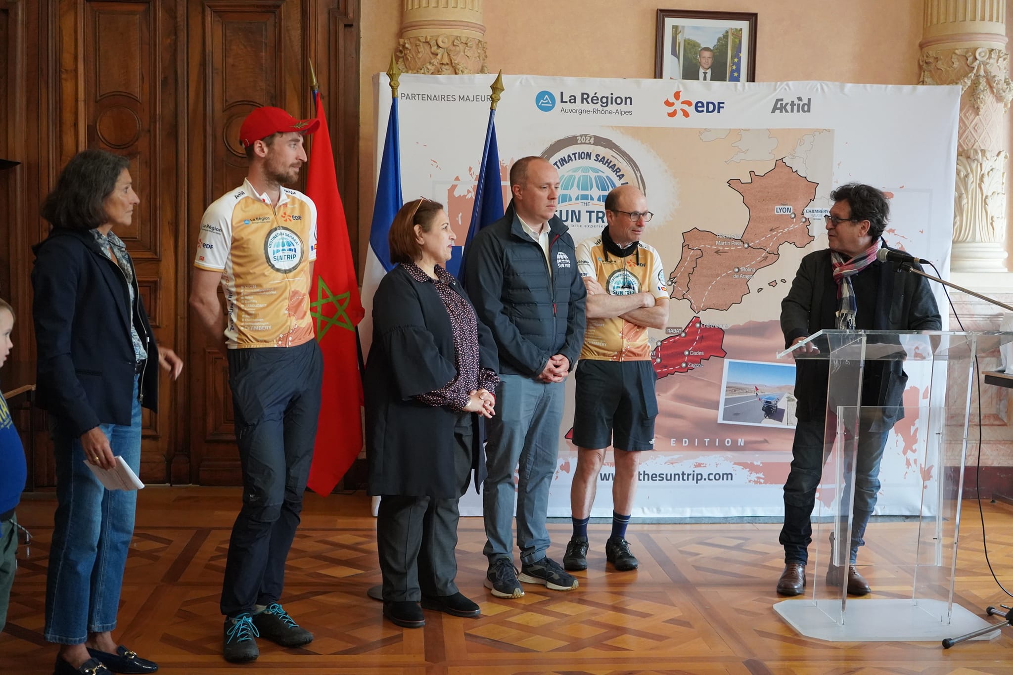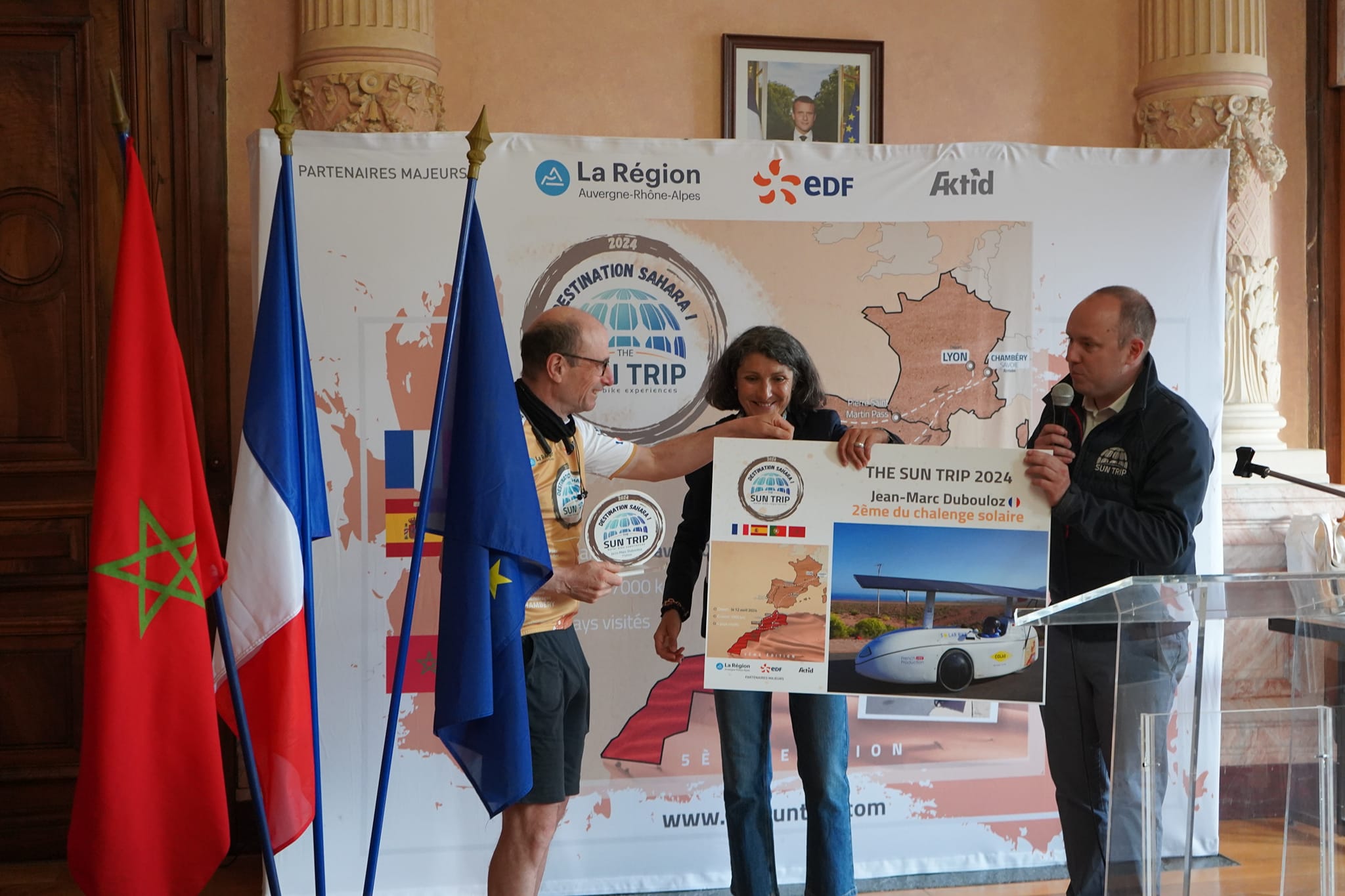 Avant de vous proposer un article final sur la course des deux premiers du Sun Trip 2024, avec leurs analyses sur les moments clés de l’aventure, voilà quelques images de la cérémonie d’accueil organisé ce 6 mai avec la ville de Chambéry, en présence de la Consule générale du Maroc à Lyon et des représentants de nos partenaire Région Auvergne-Rhône-Alpes et EDF. C’était un grand honneur de pouvoir féliciter les deux grands champions du Sun Trip 2024 dans la même cérémonie, comme nous avions déjà pu le faire en 2021.