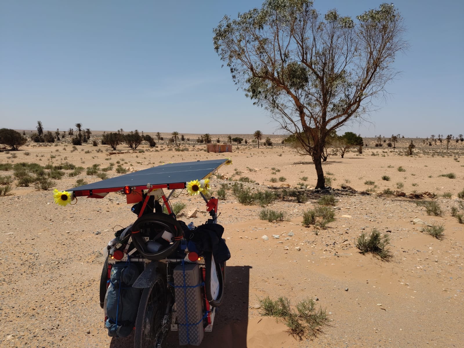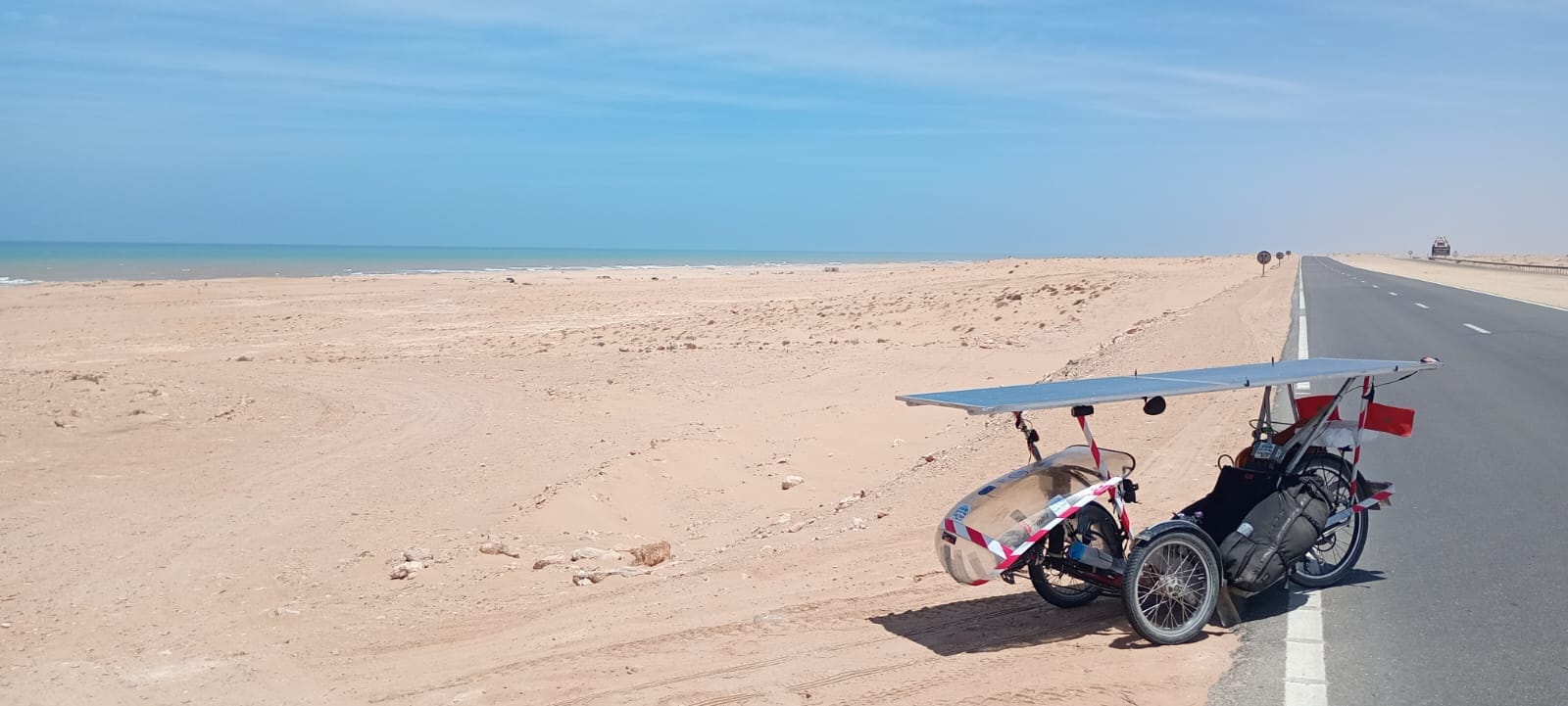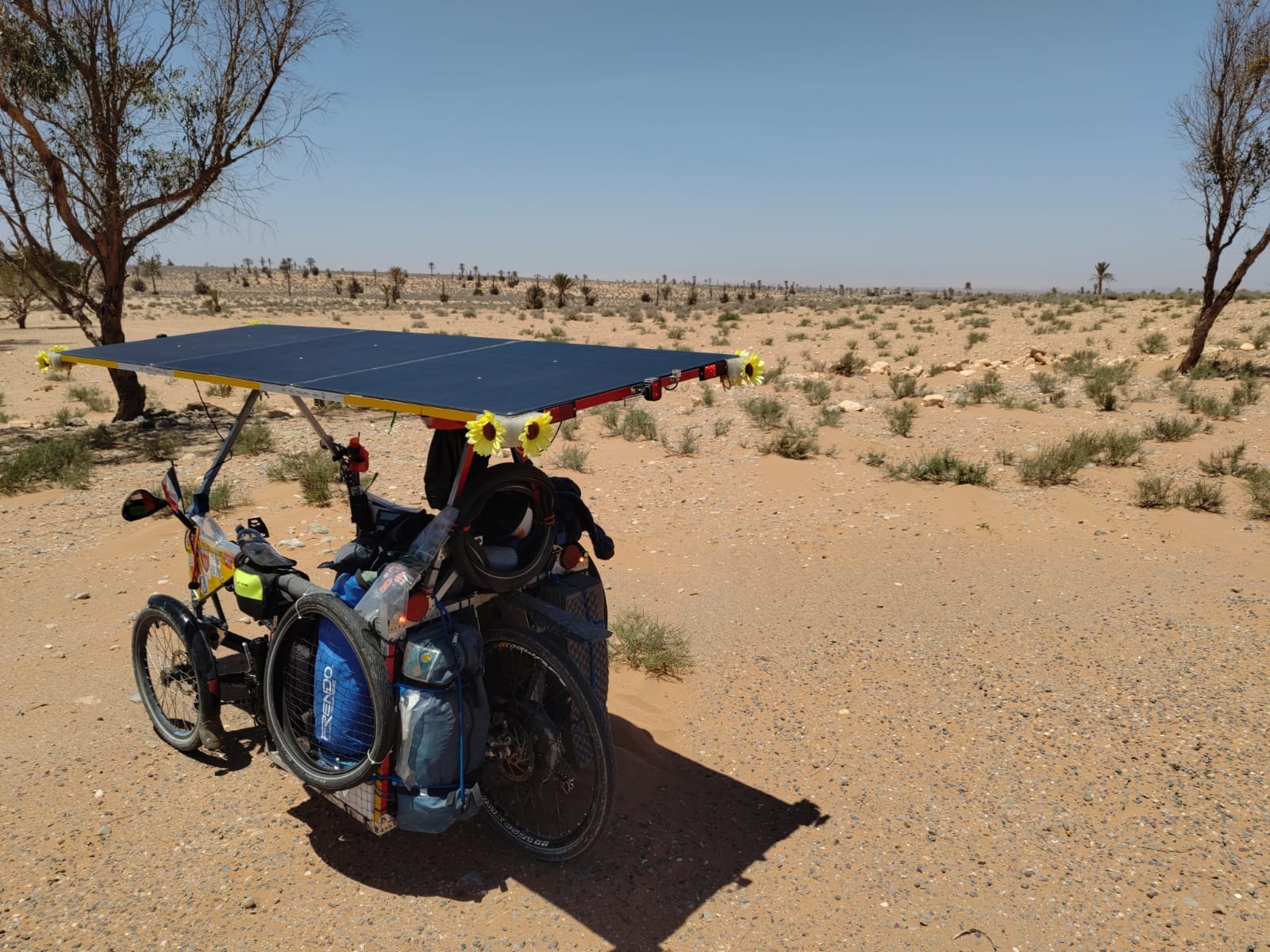 A Laayoune il ne passait pas inaperçu et avait les honneurs des télévisions locales. Puis il poursuivait son détour bonus de 1100 km en direction de Smara, en se rapprochant toujours un peu plus du Sahara. Son parcours nous permettra de juger de l’opportunité d’imager un passage du Sun Trip Maroc 2025 dans ces lieux loin de tout.
