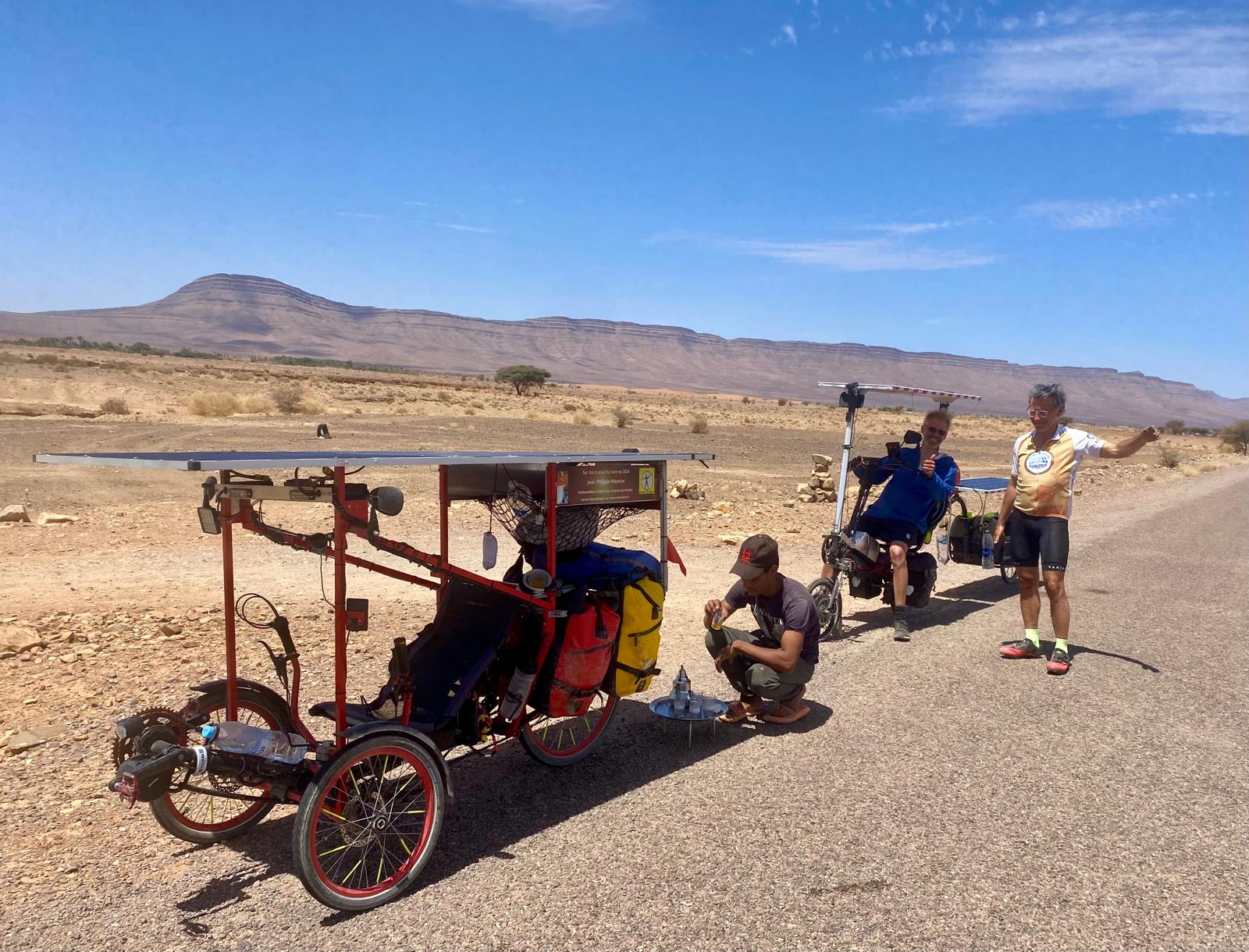 A Taroudant, les valeureux Jean-Louis Mérelle (désormais 11ème) et Vincent Lauga sont repartis après leur jour de pause. Les deux aventuriers ont rejoint la côte Atlantique et seront bientôt dans la partie désertique du projet. Une zone où se trouve actuellement plusieurs autres participants, dont Vivien Dettwiller et les 4 participants du « groupe de Taroudant » (Vincent G, Bertrand, Richard et Luciano). Ils nous partagent quelques images de leur route pour Zagora, avec la traditionnelle rencontre avec les chameaux !