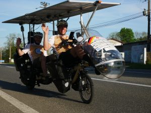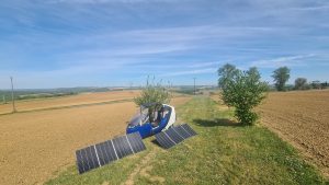 Vers 13h30 ce dimanche 14 avril, le français Patrice Plozner a fait l’annonce d’une stratégie d’évitement des nuages… Il va tenter un coup de poker en passant par le côté espagnol pour rejoindre ensuite, « à contre-sens », le checkpoint 1. C’est un détour de 200/250 km minimum, mais c’est parfaitement autorisé par le règlement de l’aventure et ça pourrait lui permettre de rester sur une recharge 100% solaire de ses batteries. On se sait pas encore ce que cela donnera mais a priori les autres participants ne vont pas le suivre dans cette stratégie. « C’est fun, mais je vais prendre la route classique » commentait Vincent Lauga, « pourquoi pas… c’est plus long je pense » disait Jean-Marc Dubouloz, » par le Pertuis c’est plat, en tout cas il pense autrement » concluait Richard Defay.