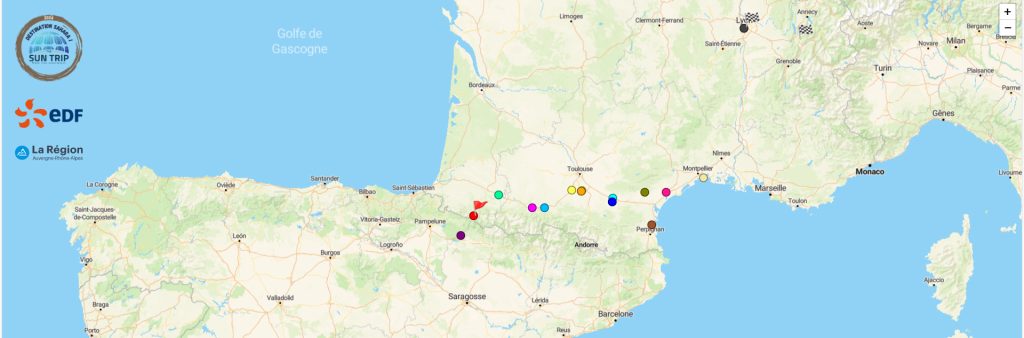 La grande information de la journée c’est évident le passage en Espagne du leader de la course, l’anglais Jack Butler. Il est donc possible de partir vendredi midi à vélo de Lyon et de passer le grand col le plus à l’Ouest des Pyrénées dans le week-end, quelques 850 km plus loin ! Encore faut-il avoir un vélo propulsé à l’énergie solaire et rouler 11 heures par jour !