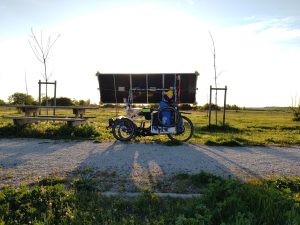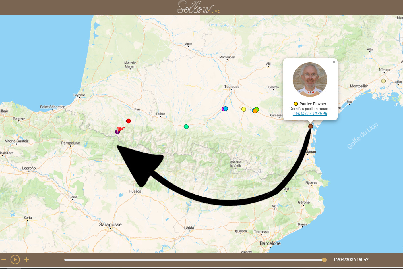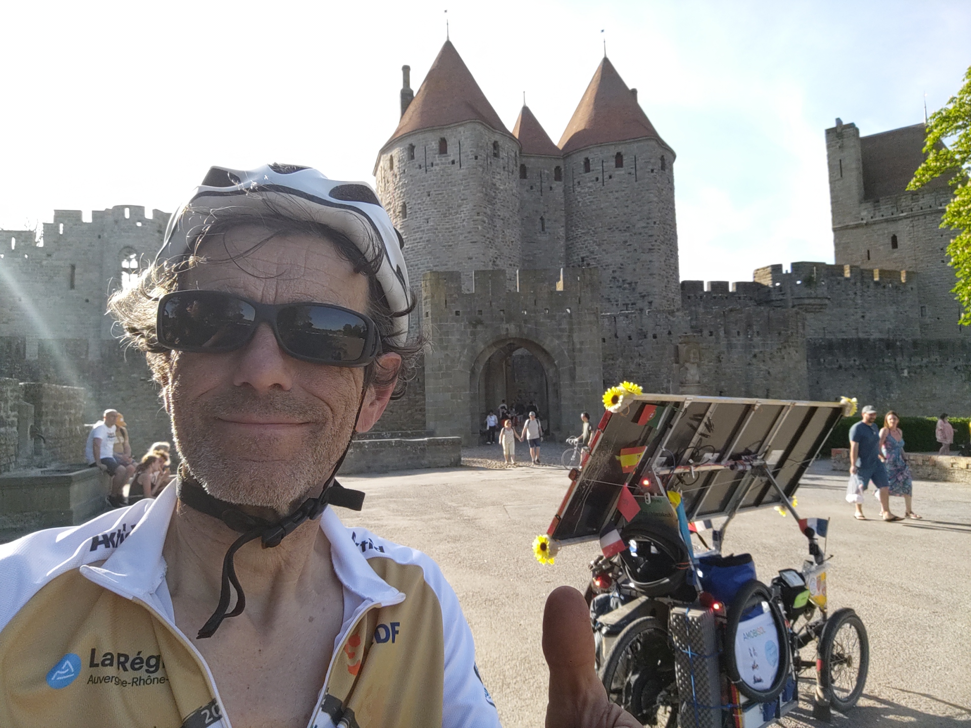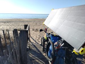 A l’arrière du groupe, le jeune belge Miquel Letor continue sa remontée vers la queue du peloton, après avoir pris un peu de temps avec ces proches sur la journée de départ. Son compatriote Herman Segers est toujours planté à Bézier, le temps de retrouver sa batterie abandonnée. Il devrait reprendre la route. Vincent Lauga lui a fatigué un peu entre problème technique et choix d’itinéraire audacieux « j’ai pris un itinéraire un peu trop au nord (pour éviter les grandes villes), très vallonné mais assez joli ». Il prévoit de passer en Espagne dans 3 jours, la plupart des autres espèrent passer d’ici mardi, si la météo le permet…