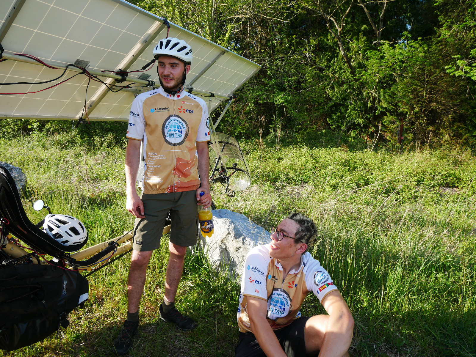 La belle rencontre du jour, c’était assurément pour Kilian et Jonas, attendus vers Tarbes par les SunTrippers Béatrice et Yannick. Merci pour ces photos 🙂