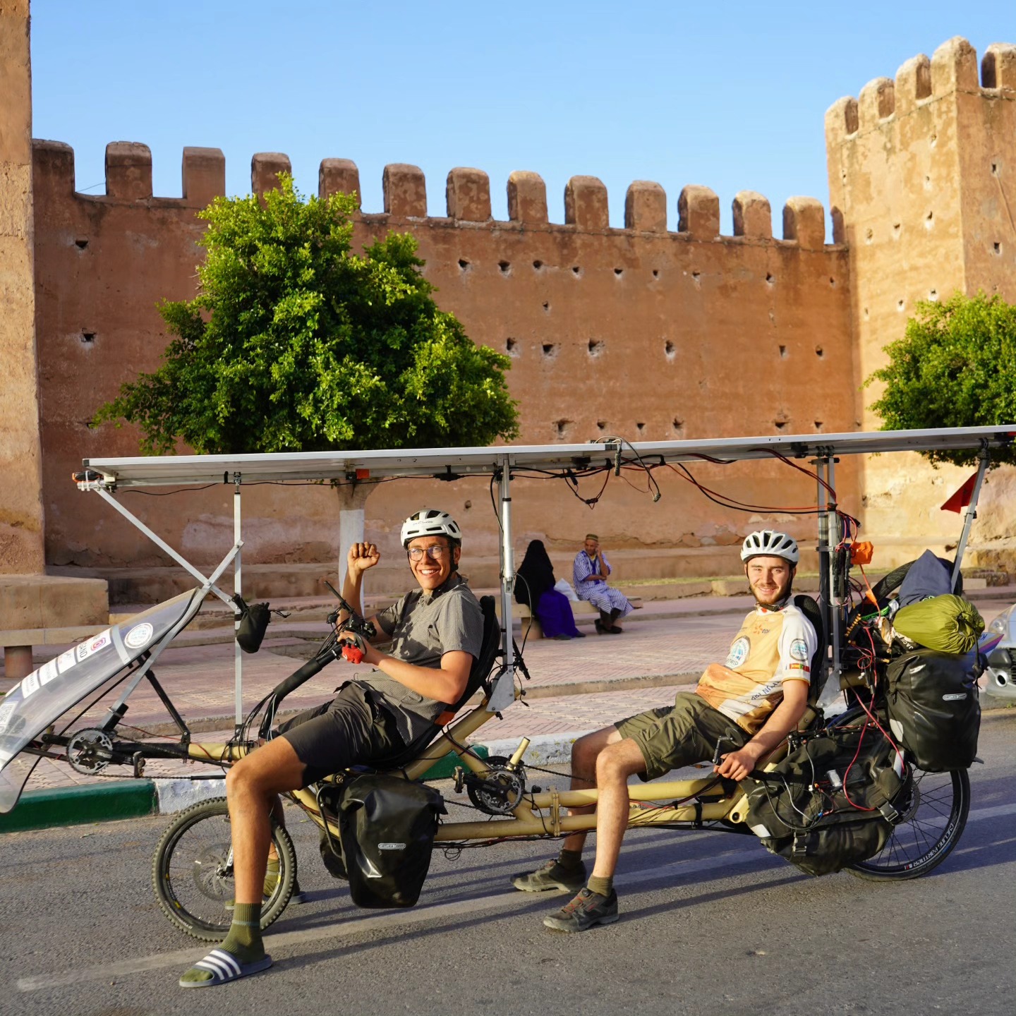 Imaginez-vous à l’année de vos 19 ans. Imaginez-vous expliquer à vos parents que vous allez partir jusqu’au Sahara marocain avec un vélo solaire, qu’il y aura 17 autres équipes, toutes plus vieilles, que vous ne croiserez jamais. Imaginez-vous camper tous les soirs, rouler 235 km par jour et finir sur le podium de cette drôle de course. Voilà ce qu’ont vécu les deux amis Kilian Weigand et Jonas Becker : une aventure hors du commun pour leur jeune âge, une épopée qui restera longtemps gravée dans leurs têtes (et dans celles de leurs proches !).