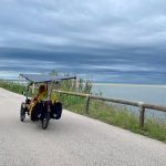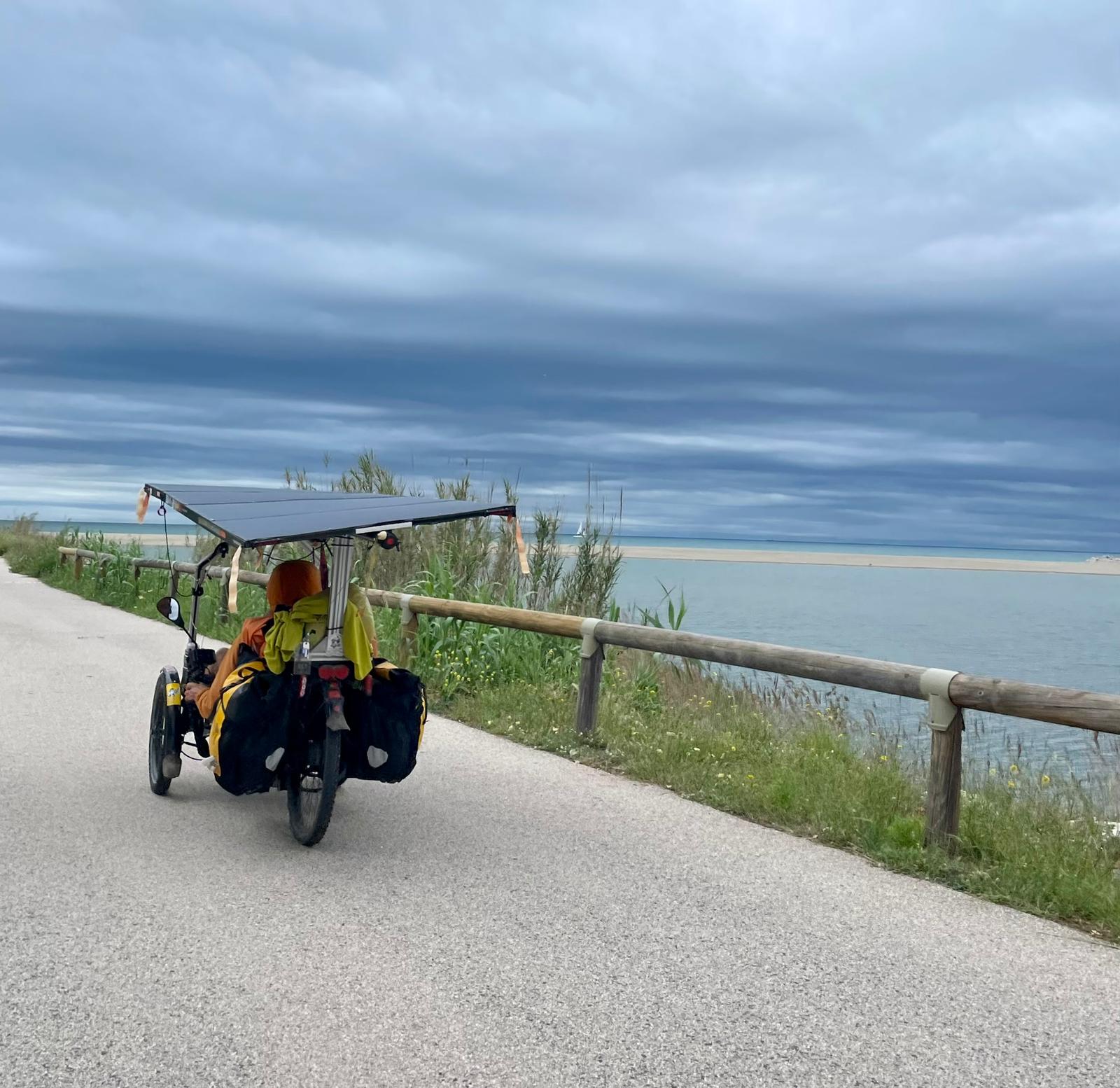 En Espagne l’ambiance est plus ensoleillée pour les participants. Le trio Vincent Gallego, Luciano et Bertrand ne roule pas toujours ensemble mais ils se retrouve généralement le soir et « l’objectif est d’arrivée tous les trois » nous indique Vincent. « l’énergie du retour n’est pas la même que l’excitation de l’aller, mais c’est toujours un plaisir de retrouver le pays de mes ancêtres paternel. Changements de paysages tous les jours aujourd’hui la Mancha et les paysages hypnotisant des champs de blé sous le vent« .