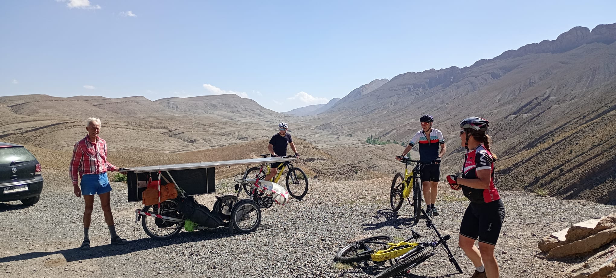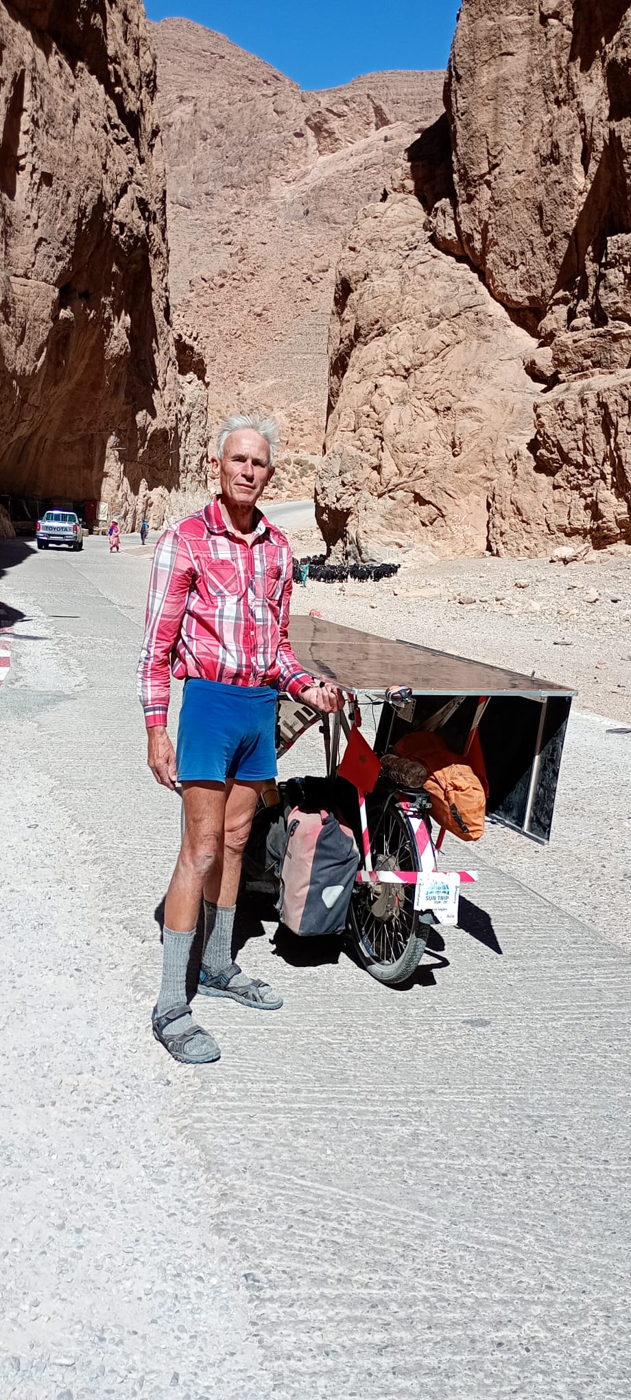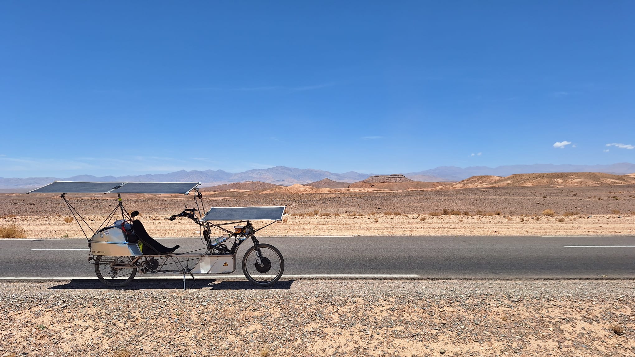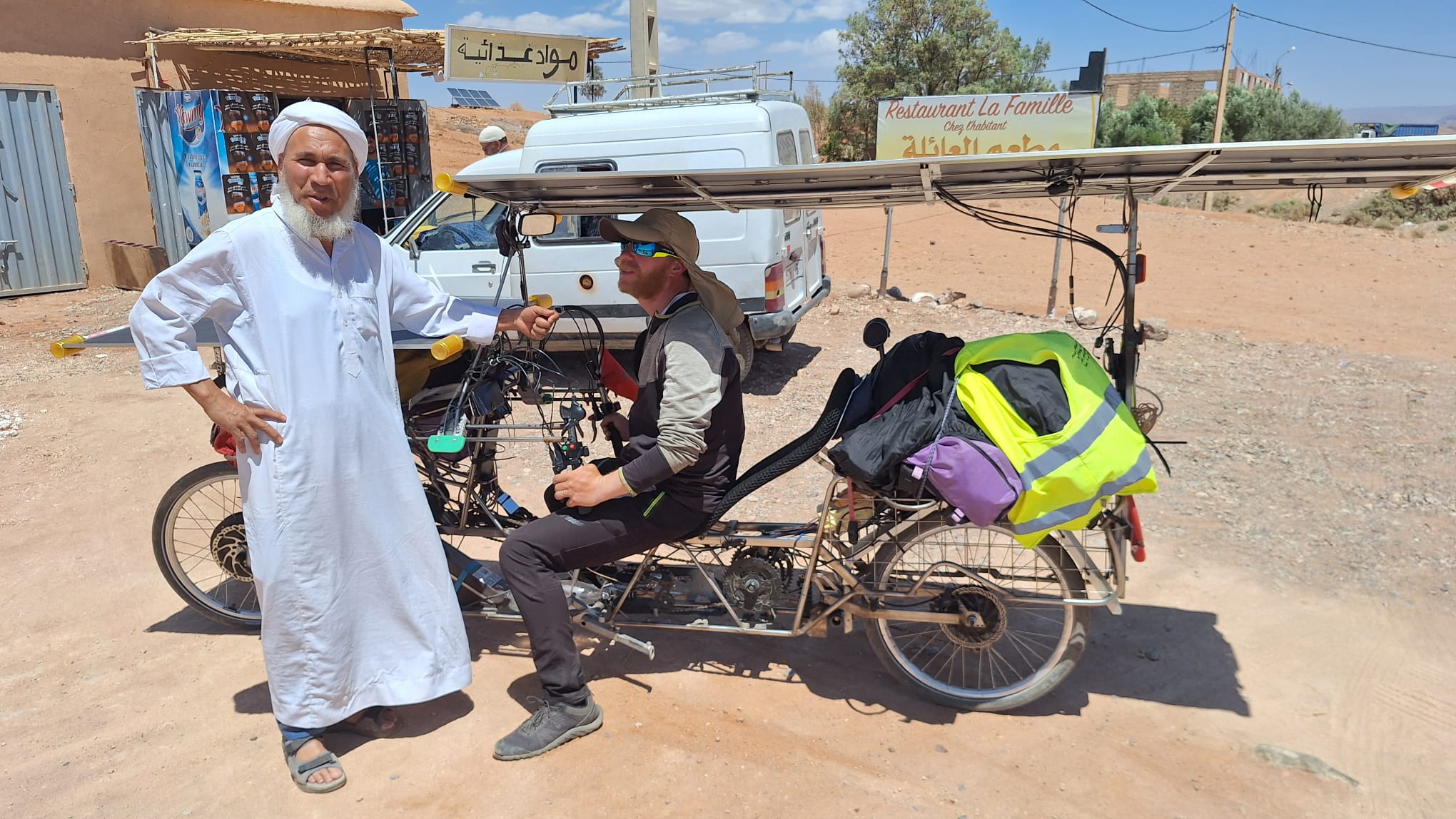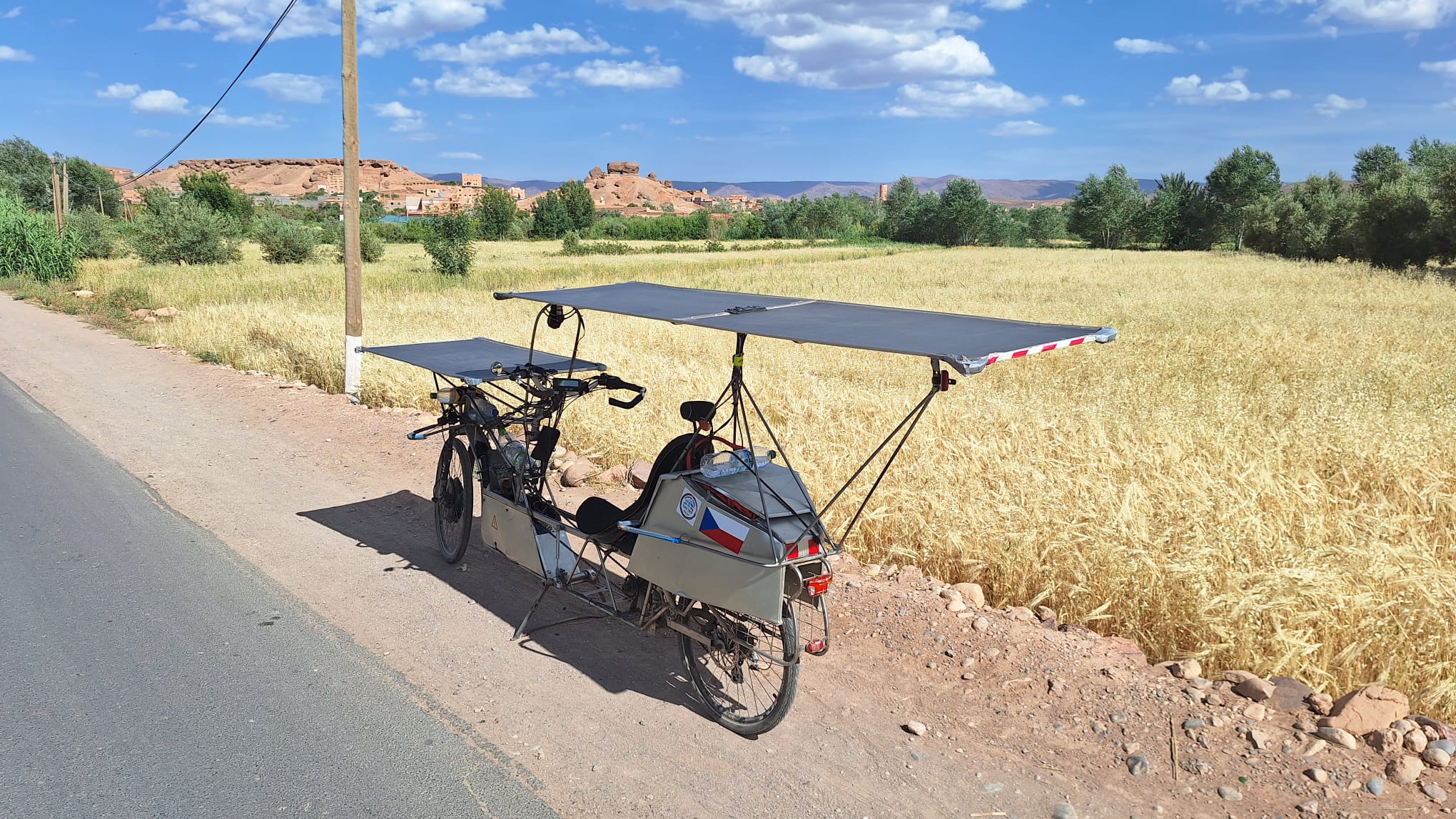 Pour finir, voilà une série de superbes photos prises par les Tchèques Michael et Jiri, lors de leur raccourci du parcours par Ouarzazate. Les deux hommes ont toujours des problèmes de recharge solaire mais ils en prennent plein les yeux.