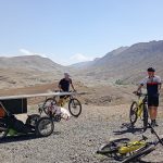 Un peu derrière, Vincent Lauga semble connaître la fatigue. Le soir il nous écrivait ces mots « j’ai des forts maux de tête depuis ce matin… dur… je me suis couché au bord de la route et j’ai dormi 1/2 heure, je souhaite juste que ça aille mieux« . On espère qu’il va vite retrouver la forme et on partage ces belles photos prises dans les montagnes.