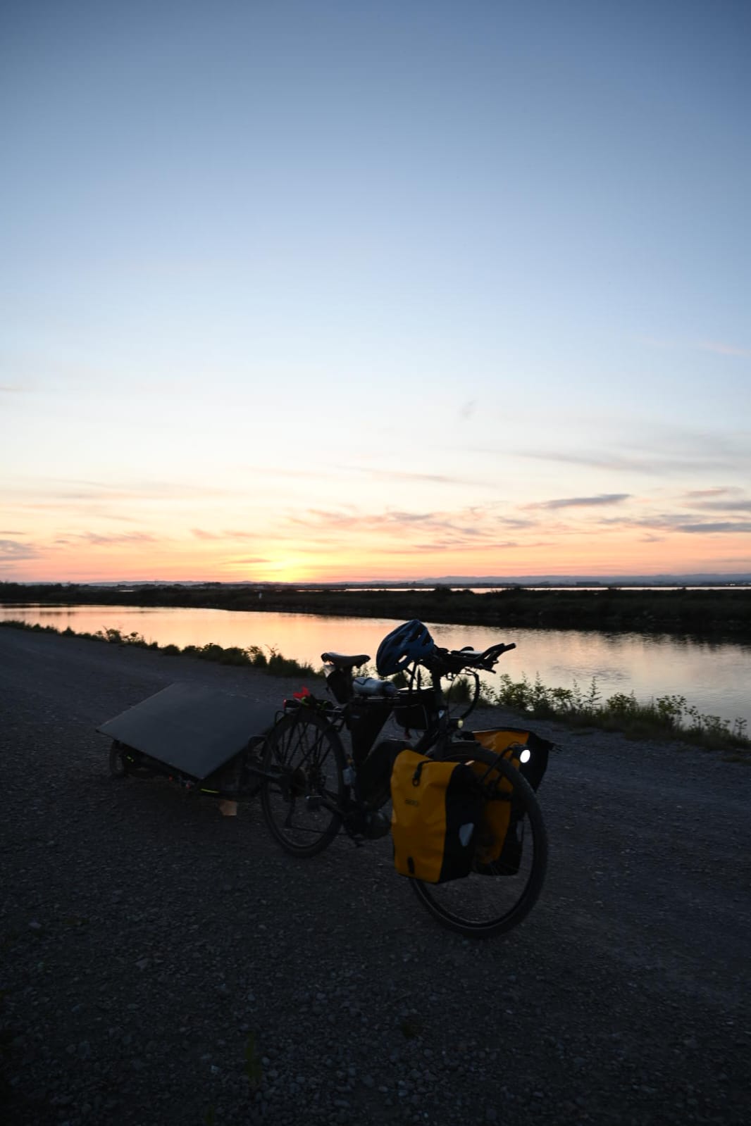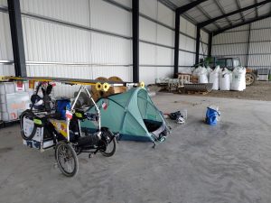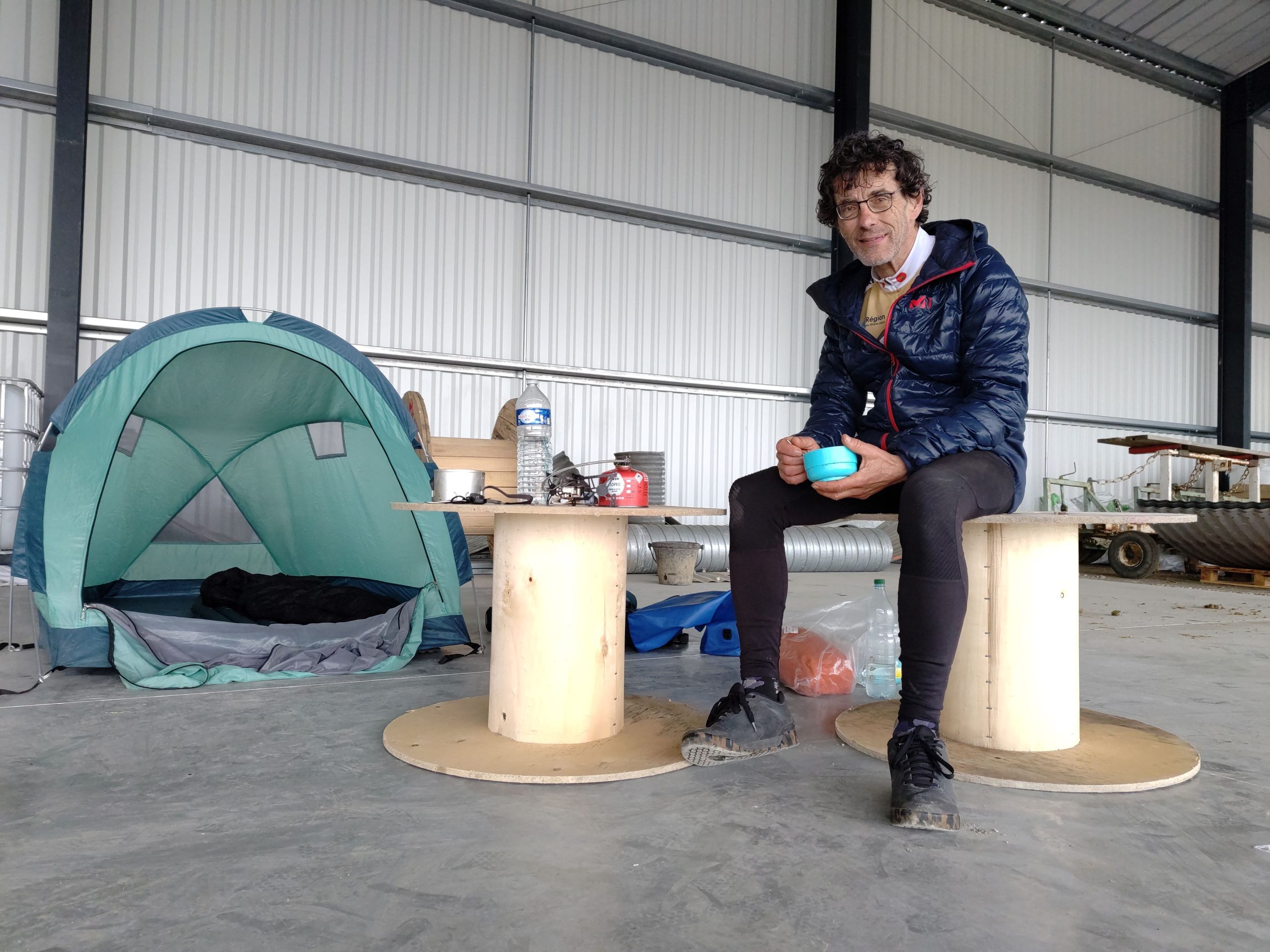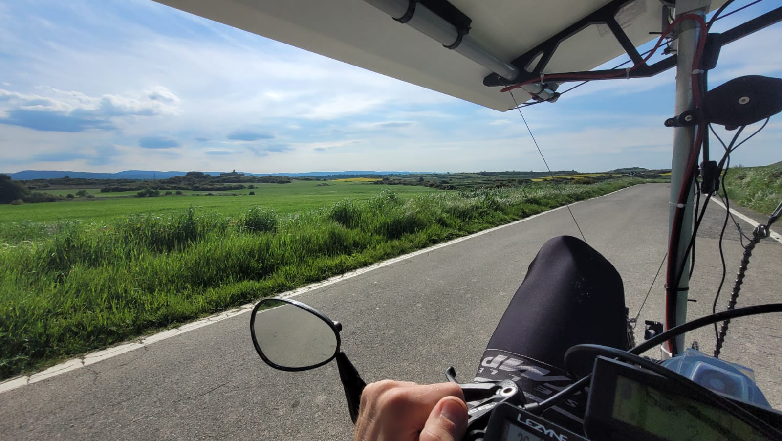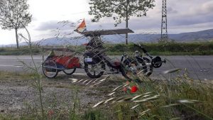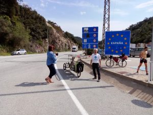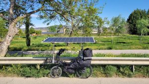 Peu après, c’est un message envoyé par Vincent Lauge (LPO), aux environs de Carcassonne, qui donnait le ton de la vie de peloton : « Je vide les batteries en m’épuisant face au vent, parfois à moins de 10km/h, c’est la galère !« . Géry Gevers de surenchérir, sur le groupe de discussion des participants : « nous nous sommes à 6km/h !« . « 10 minutes de soleil seulement aujourd’hui« , pour Jean-Louis Mérelle, et du côté Bertrant Goudenhooft décision spectaculaire pour s’adapter aux conditions : « J ai abandonné ma remorque chez un agriculteur, trop de vent, trop de poids » !
