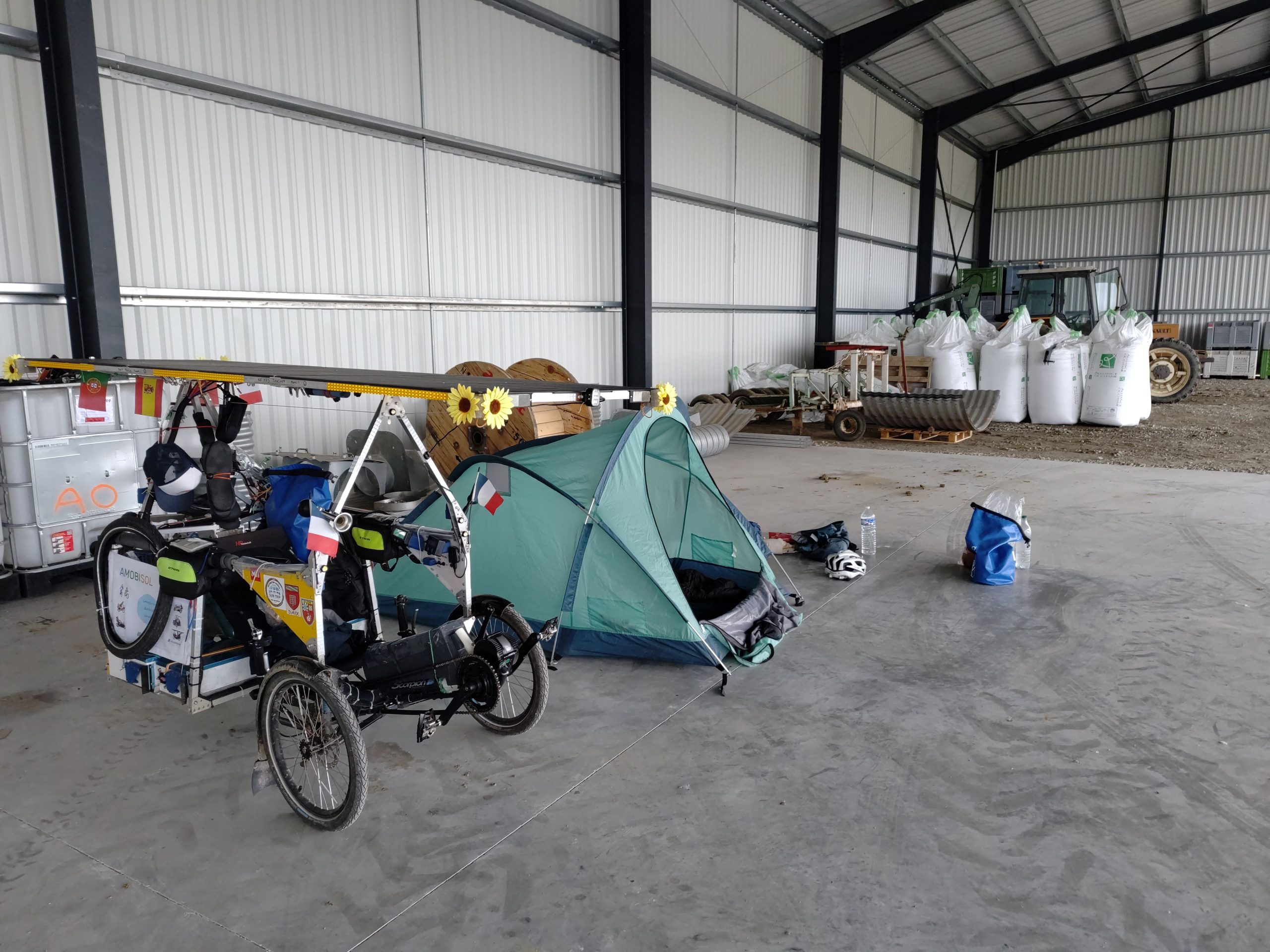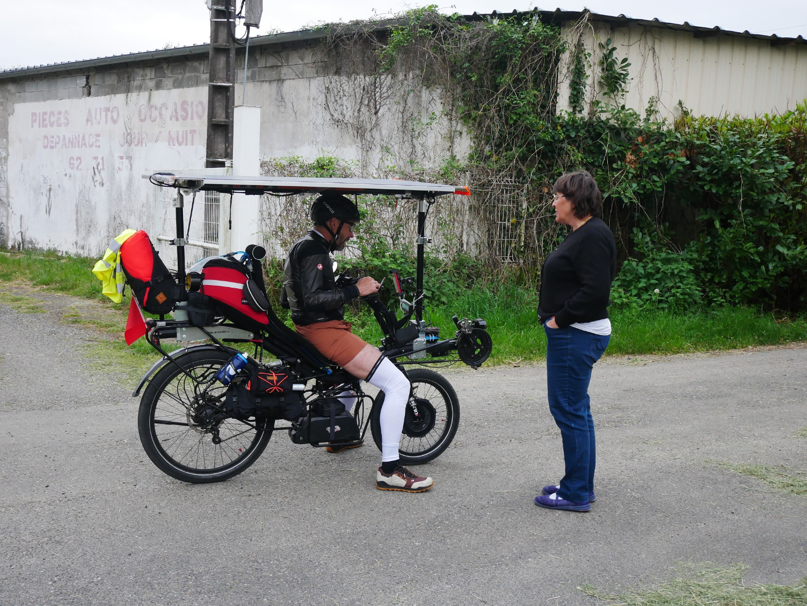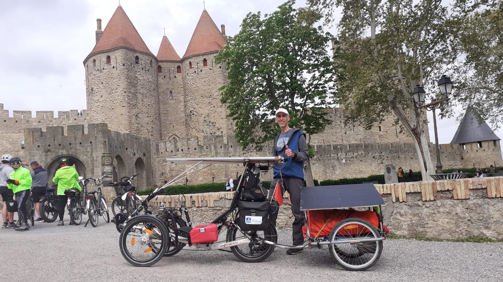 En parlant de malchance, Herman a eu sa part ! Il est bloqué à Bézier depuis samedi car depuis ce jour il a des problèmes avec sa nouvelle batterie. Problème il avait laissé son ancienne batterie à l’hôtel de la veille, 200 km plus au nord. Dimanche il a donc pris un train pour aller la récupérer, mais sur le retour il c’est endormi, il a raté l’arrêt de Bézier, pour au final oublier la batterie récupérée dans le train ! Lundi il a donc du faire un 2ème trajet en train pour aller acheter une batterie chez Declic-eco vers Istres ! Il devrait reprendre la route ce mardi, mais la course au podium est déjà terminée pour lui.