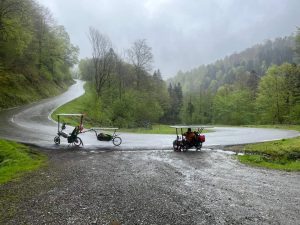 Ils se battent et tachent de garder le moral : « Je suis cuit, la journée d’aujourd’hui a été la plus difficile qui soit !« , nous dit Luciano Trumpler. Pour Jean-Louis Mérelle « le moral remonte et les belles rencontres se multiplient« , et même Patrice Plozner, qui pointe en dernière position après son choix de passer par le sud trouve de l’espoir « Enfin trouvé un soleil pérenne. Toujours dur de stocker. Mais demain je suis quasiment certain que j’aurais du soleil au réveil. Enfin une bonne journée pour me rapprocher du col« . D’autres restent groupés pour se soutenir « On roule à quatre et ça fait l’accordéon plusieurs fois dans la journée quand on n’est pas trop loin des uns des autres c’est beau à voir ces engins« , précise Richard Defay.