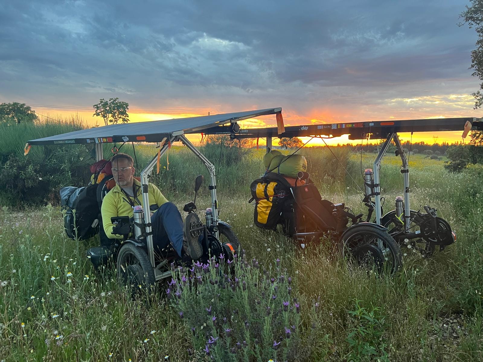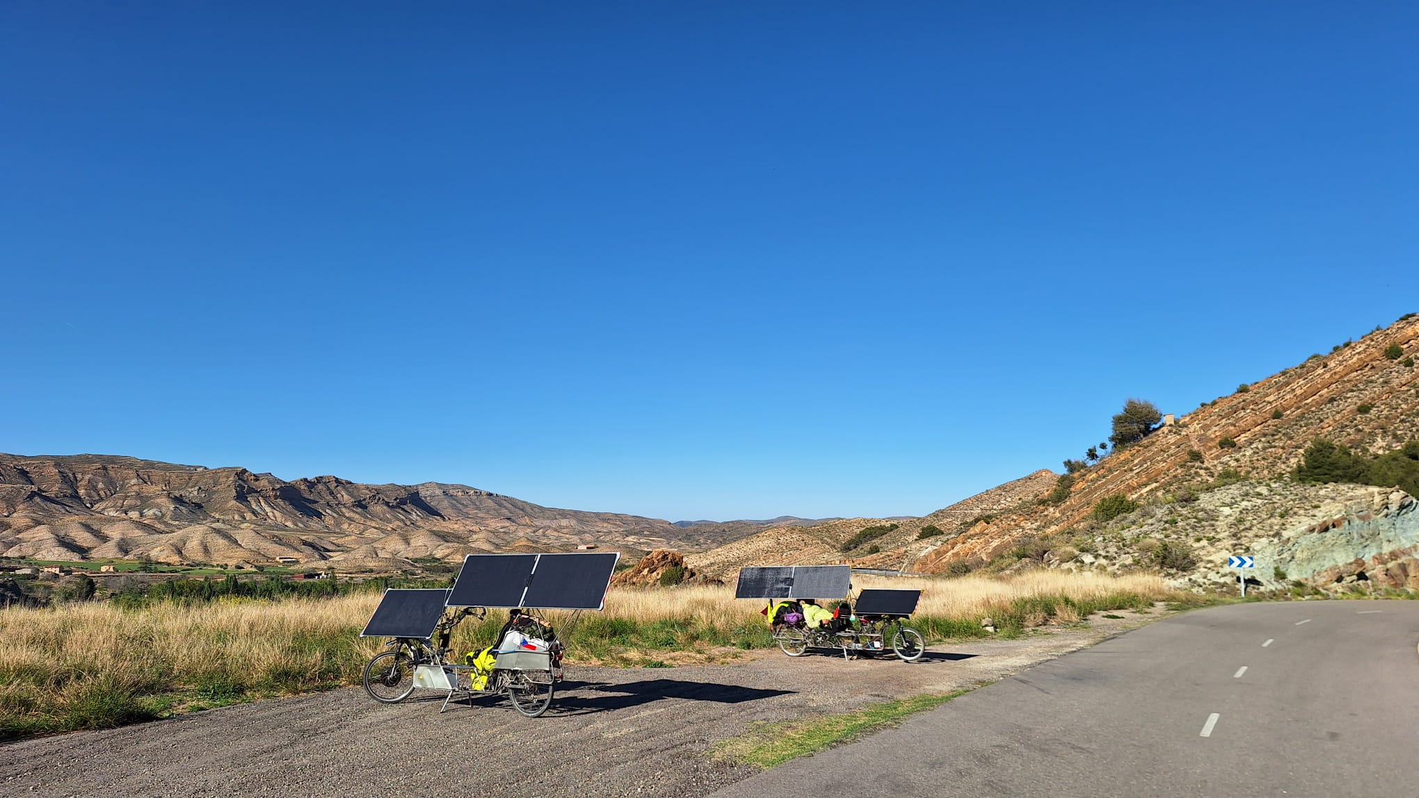 Géry & Baudouin : « nous sommes pour l’instant super contents de nos nouveaux vélos tricycles. Ils nous permettent de reposer nos cous et nos poignets par rapport à nos anciens. Les deux moteurs ( direct drive et geared) nous permettent de tirer avantages des deux ( réglages fins, traction et regen pour le direct drive et capacité de travailler à faible vitesse et en propulsion pour le geared). Pour les passages difficiles comme des pentes à 20% , ou chemins boueux ou sablonneux, nous avons deux roues motrices et une puissance énorme si besoin. Le système est totalement redondant ce qui nous permets de fonctionner en cas de panne d’une chaîne d’entraînement. Je dirais que nous parvenons à rouler 40kn de plus par jour de lors de l’édition 2021 »